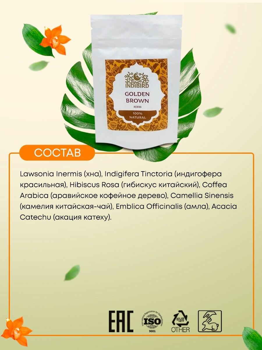 Хна золотисто-коричневая (Golden Brown Henna) Indibird 50 г