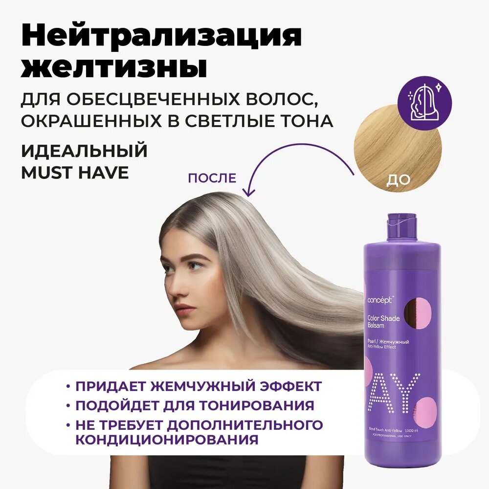 Concept Anti-Yellow Color Shade Balsam for Blond & Blonded Hair Pearl Effect - Концепт Анти Еллоу Колор Шейдс Блонд Перл Оттеночный бальзам для нейтрализации желтизны "Эффект Жемчужный блонд", 300 мл -