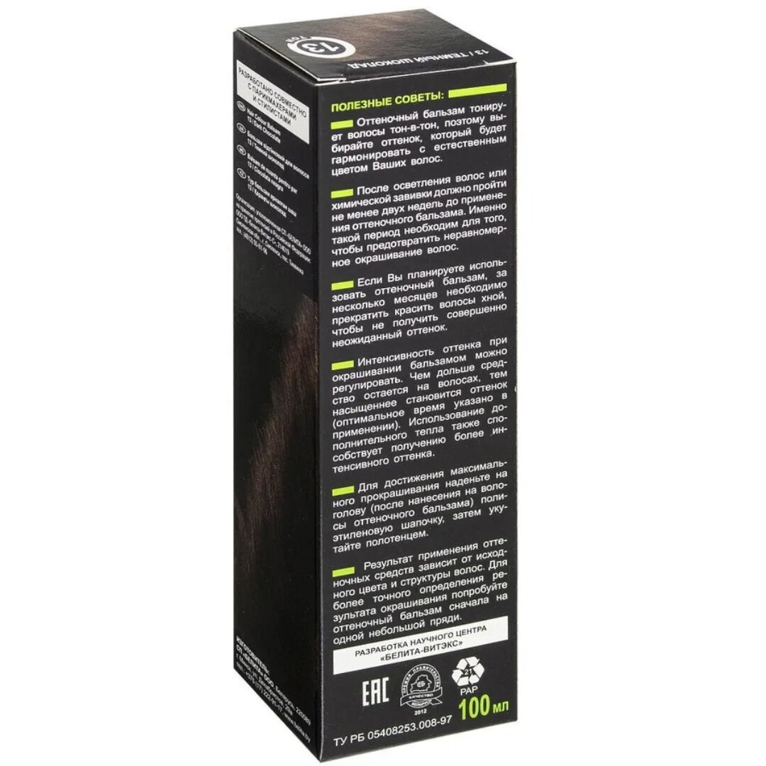 Бальзам для волос Белита оттеночный тон 13 темный шоколад, туба, 100 мл.