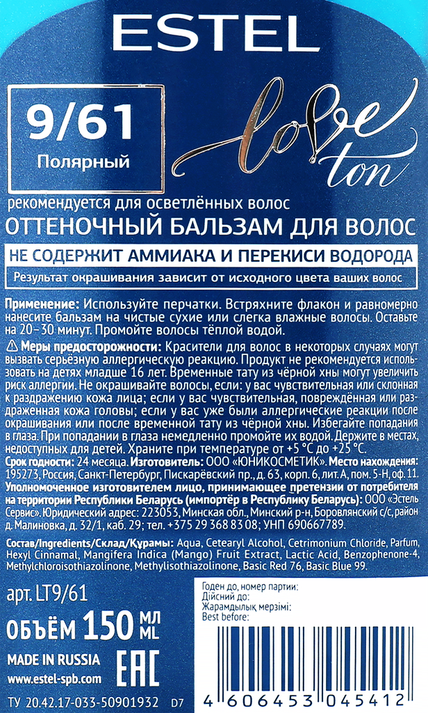 Оттеночный бальзам для волос Estel Love Ton т.9/61 Полярный 150 мл