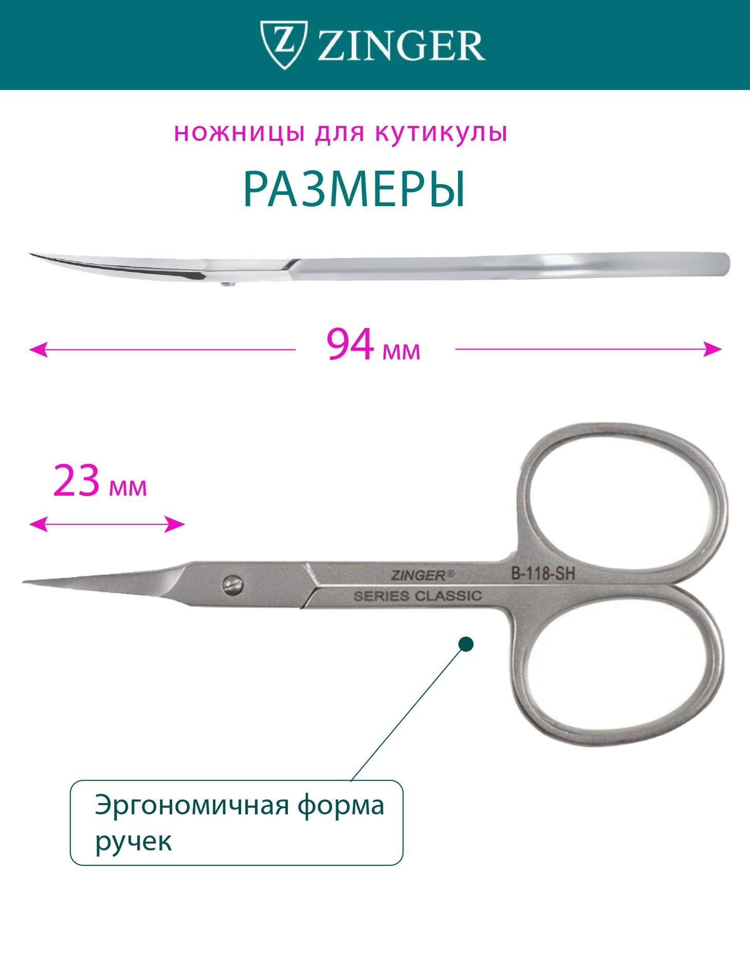 Ножницы ZINGER д/кутикулы заточенные (арт. B-118)