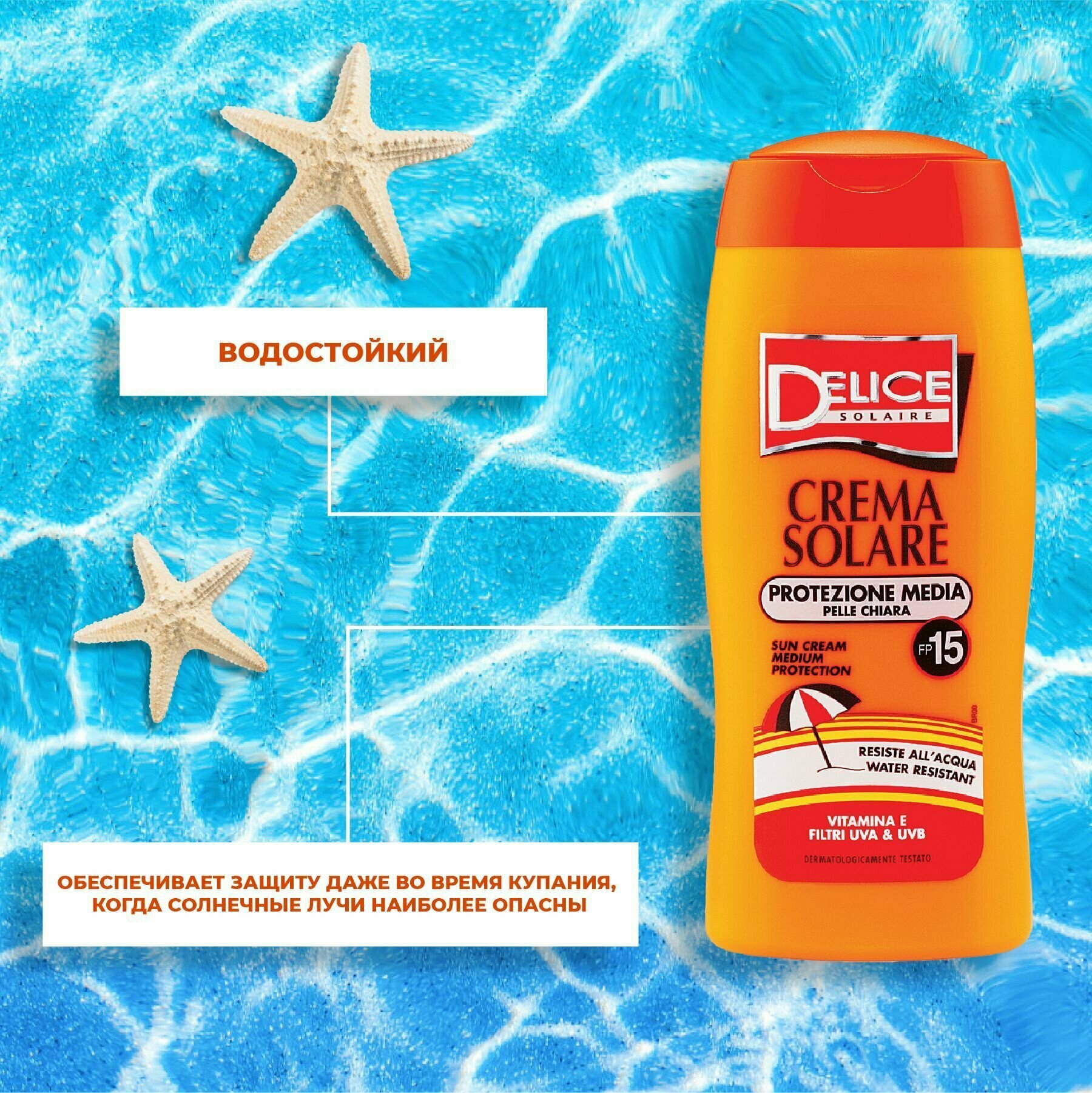 Солнцезащитный крем для тела Delice Solaire SPF 15 с вит.Е, 250 мл