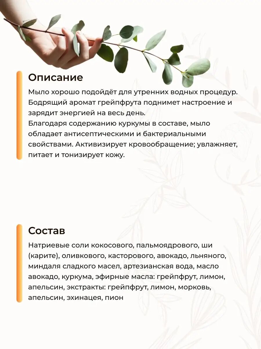 Levrana, Мыло натуральное "Цитрусовая свежесть", ручной работы, 100г интересное: