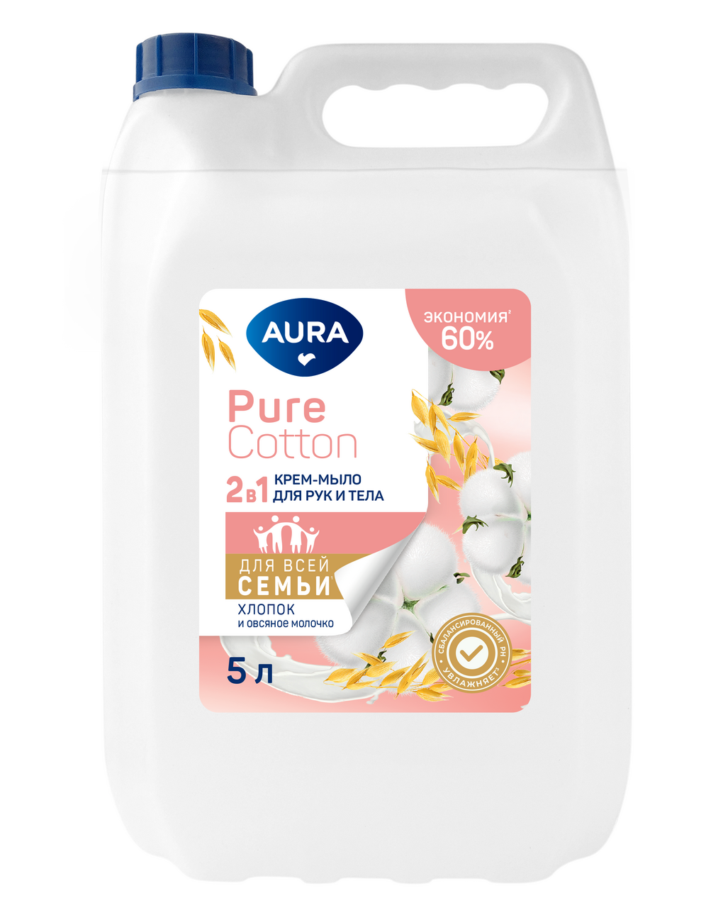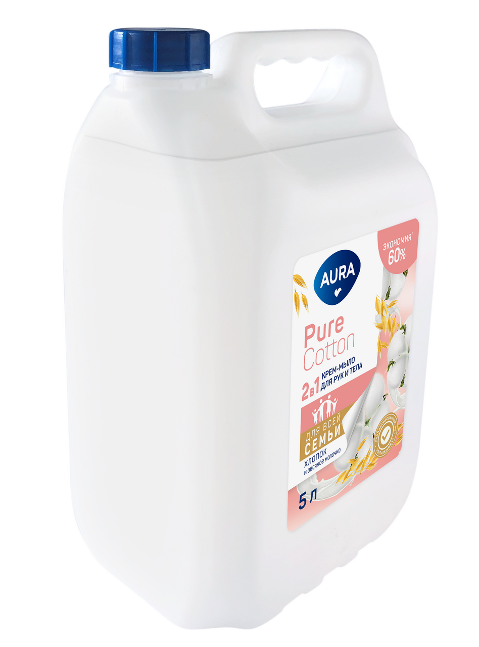 Купить Жидкое мыло AURA Pure Cotton, для рук и тела 2в1 Хлопок и Овсяное Молочко 5 л