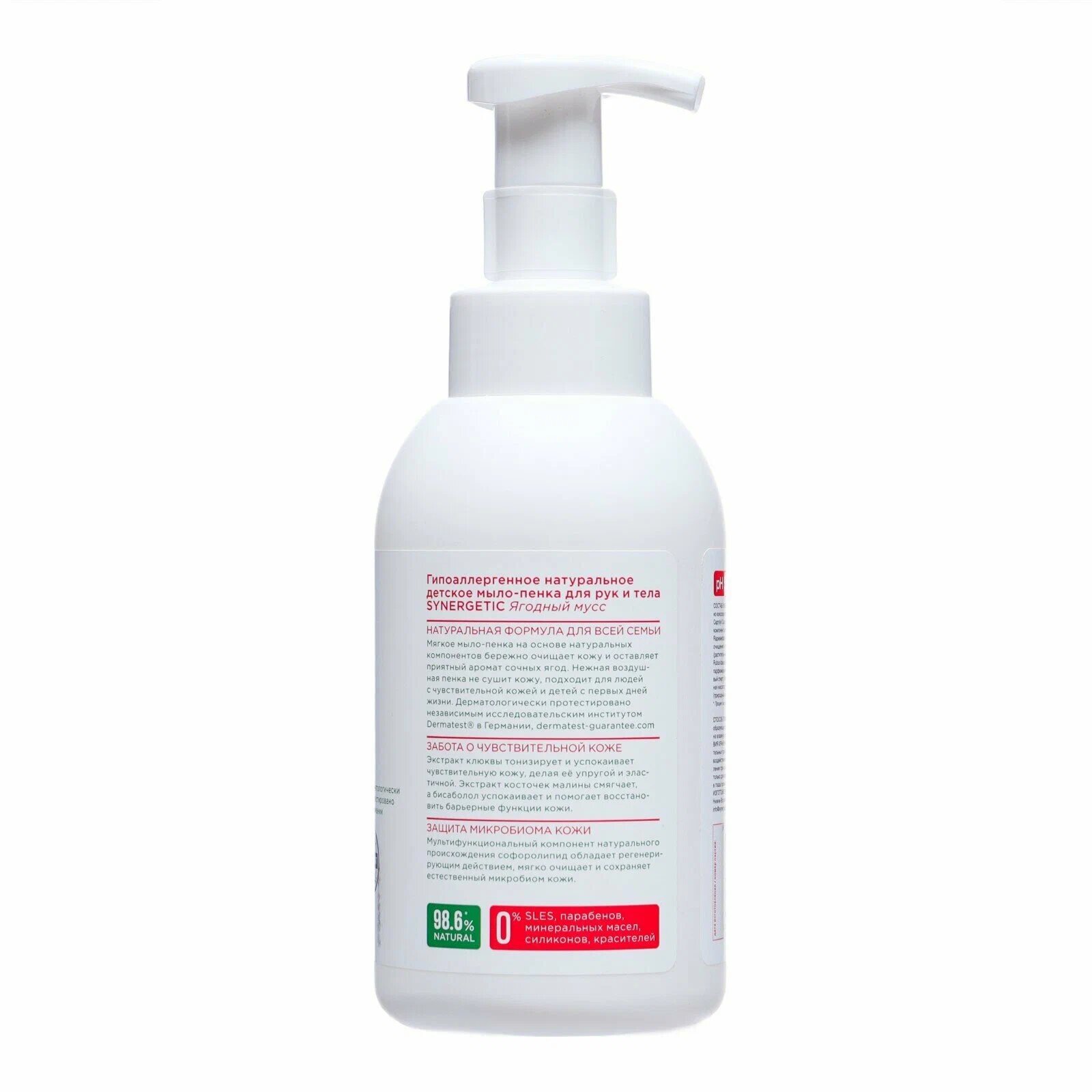 Гипоаллергенное натуральное детское мыло-пенка для рук и тела SYNERGETIC Ягодный мусс, 500 мл