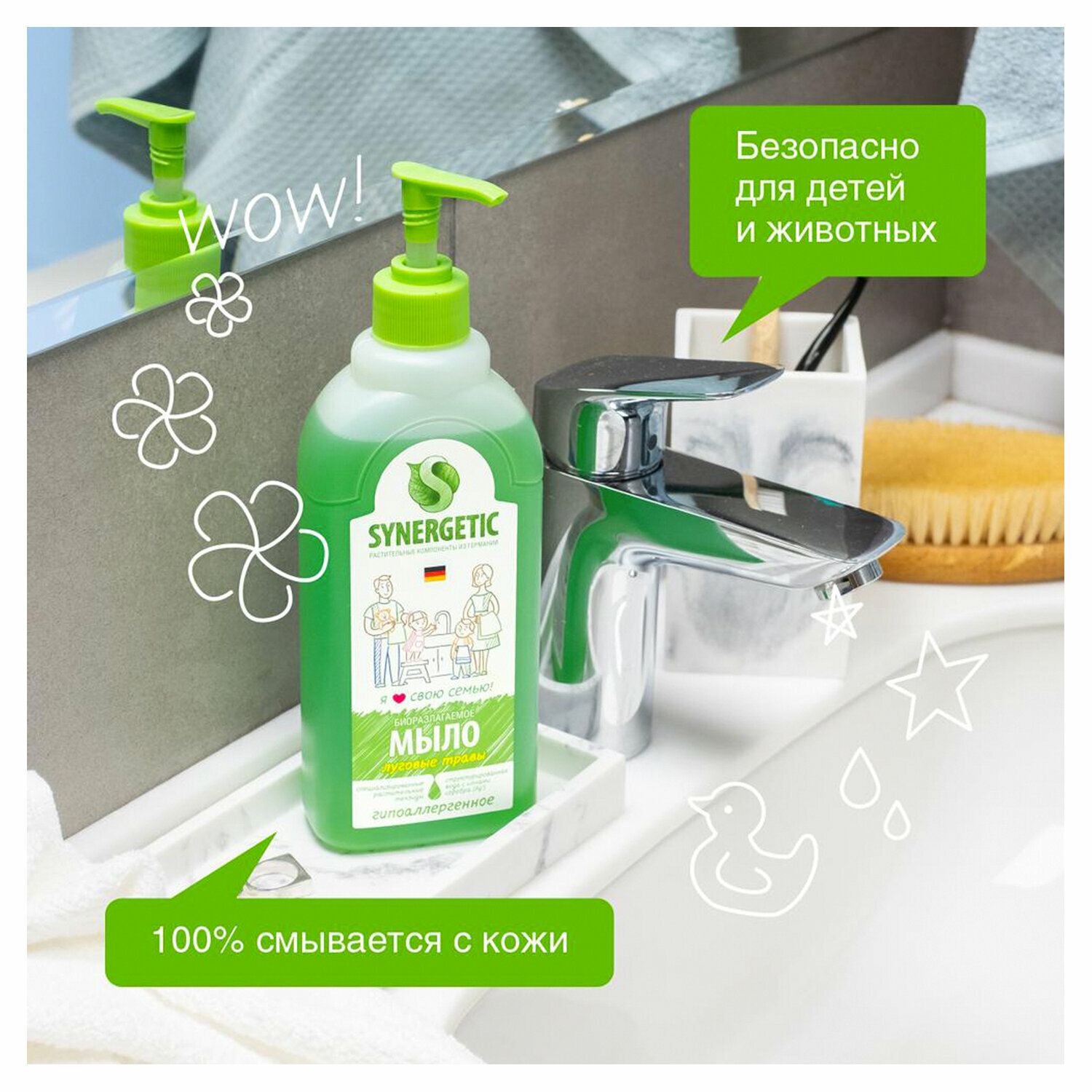 Synergetic Мыло жидкое Synergetic, "Луговые травы", биоразлагаемое, гипоаллергенное, с дозатором, 500 мл