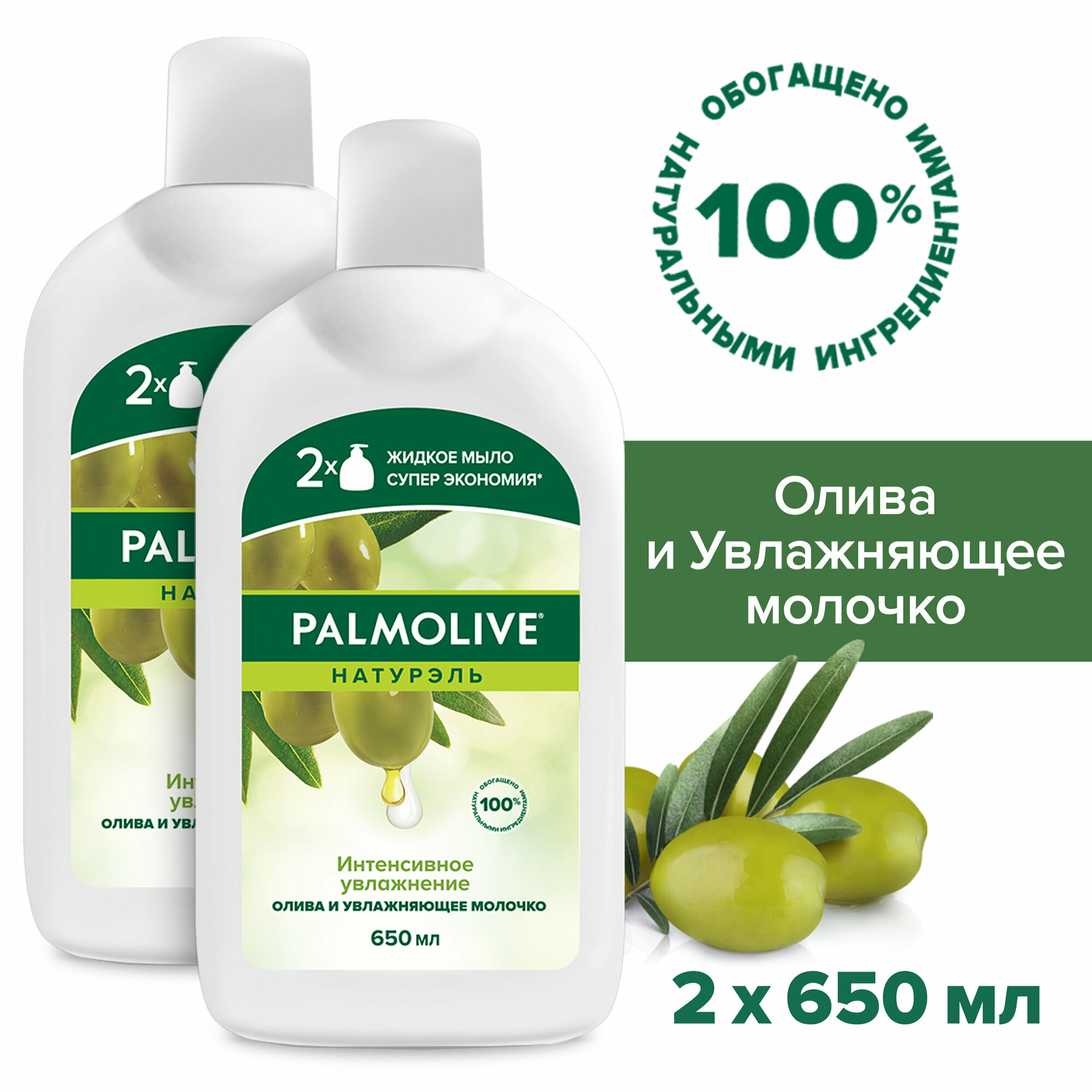 PALMOLIVE Натурэль Интенсивное Увлажнение Олива и Увлажняющее молочко жидкое мыло, 2 шт по 300 мл