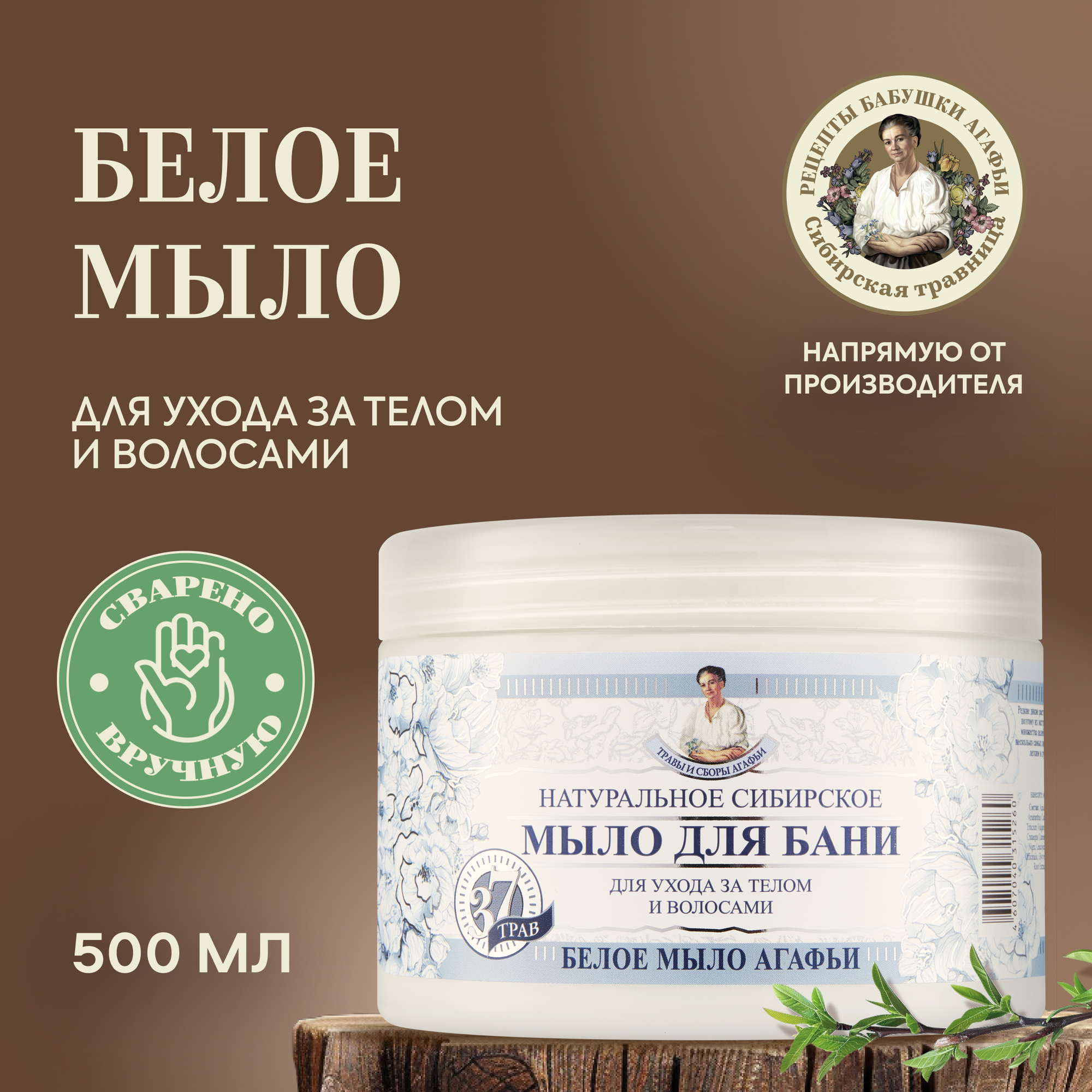 Рецепты бабушки агафьи Натуральное сибирское Белое мыло для бани, для тела и волос, 500 мл, Рецепты бабушки Агафьи