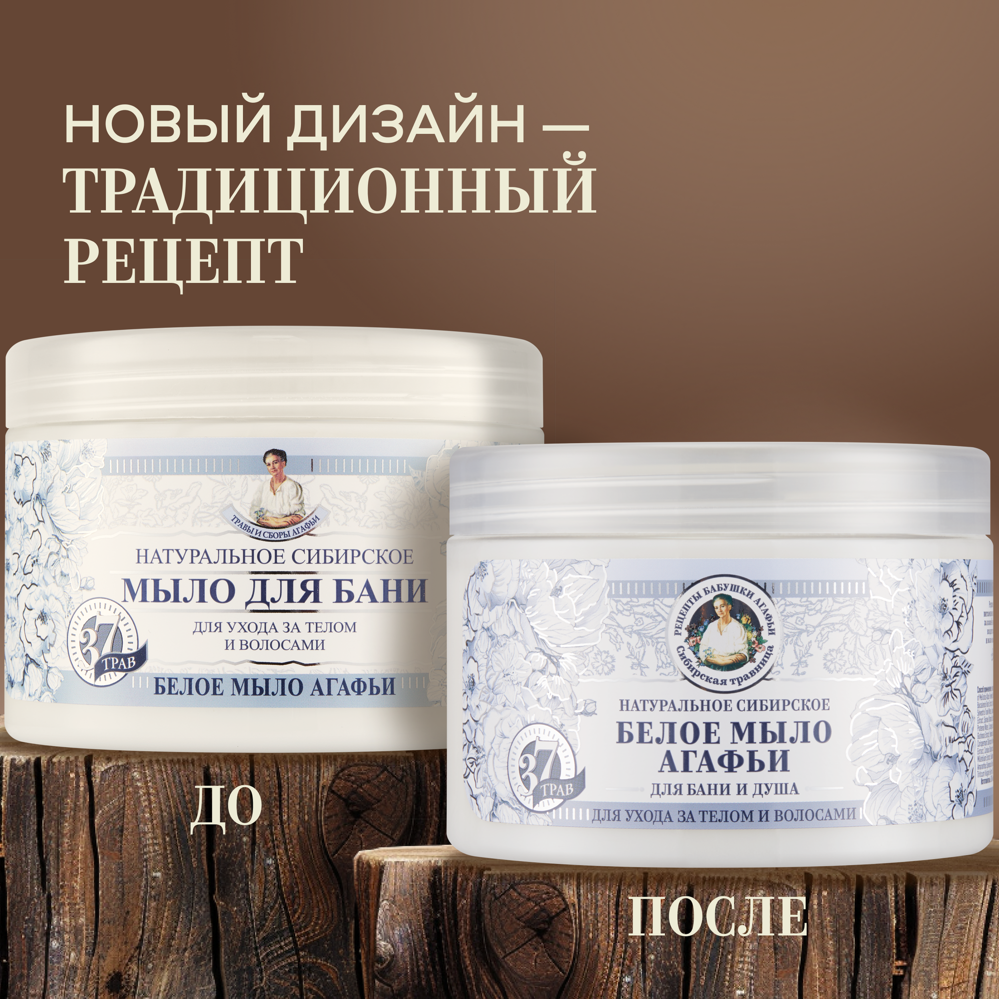 Купить Белое мыло для бани Рецепты бабушки Агафьи "Травы и сборы" густое для волос и тела 500 мл