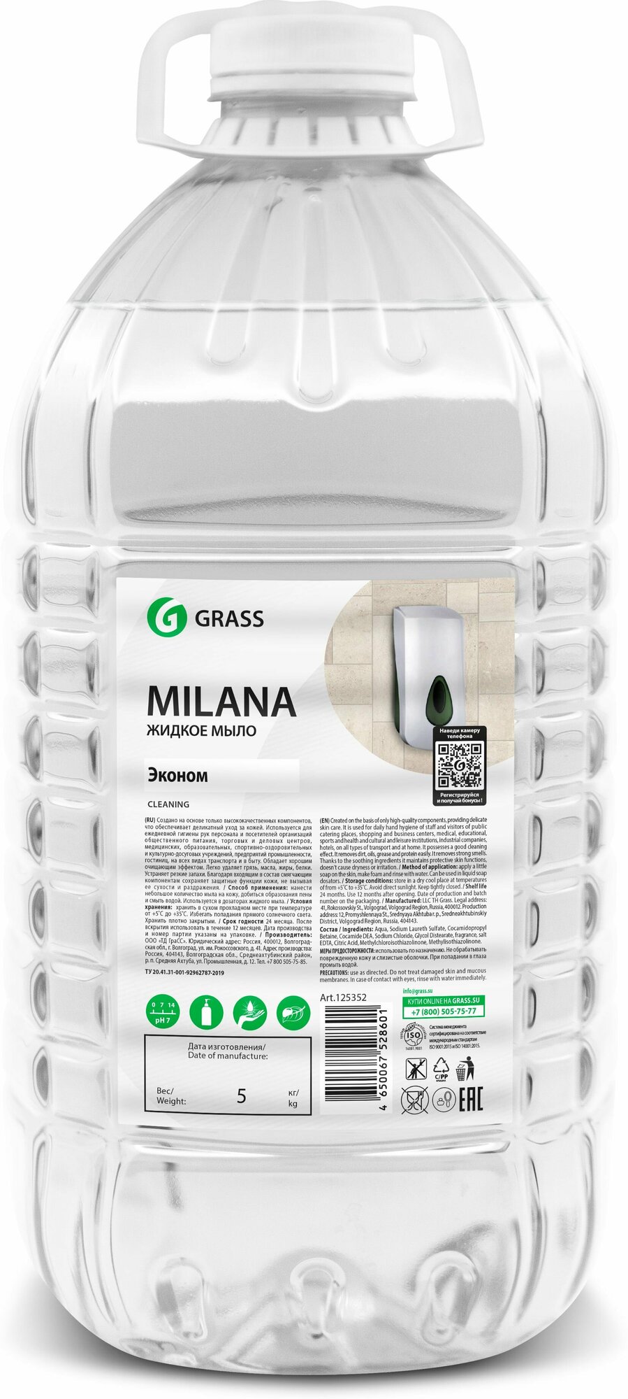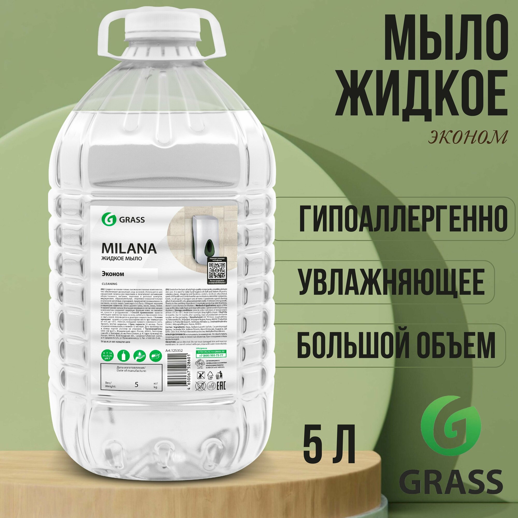 GRASS 125352 Мыло жидкое GraSS MILANA Эконом (5л) пэт-бутылка