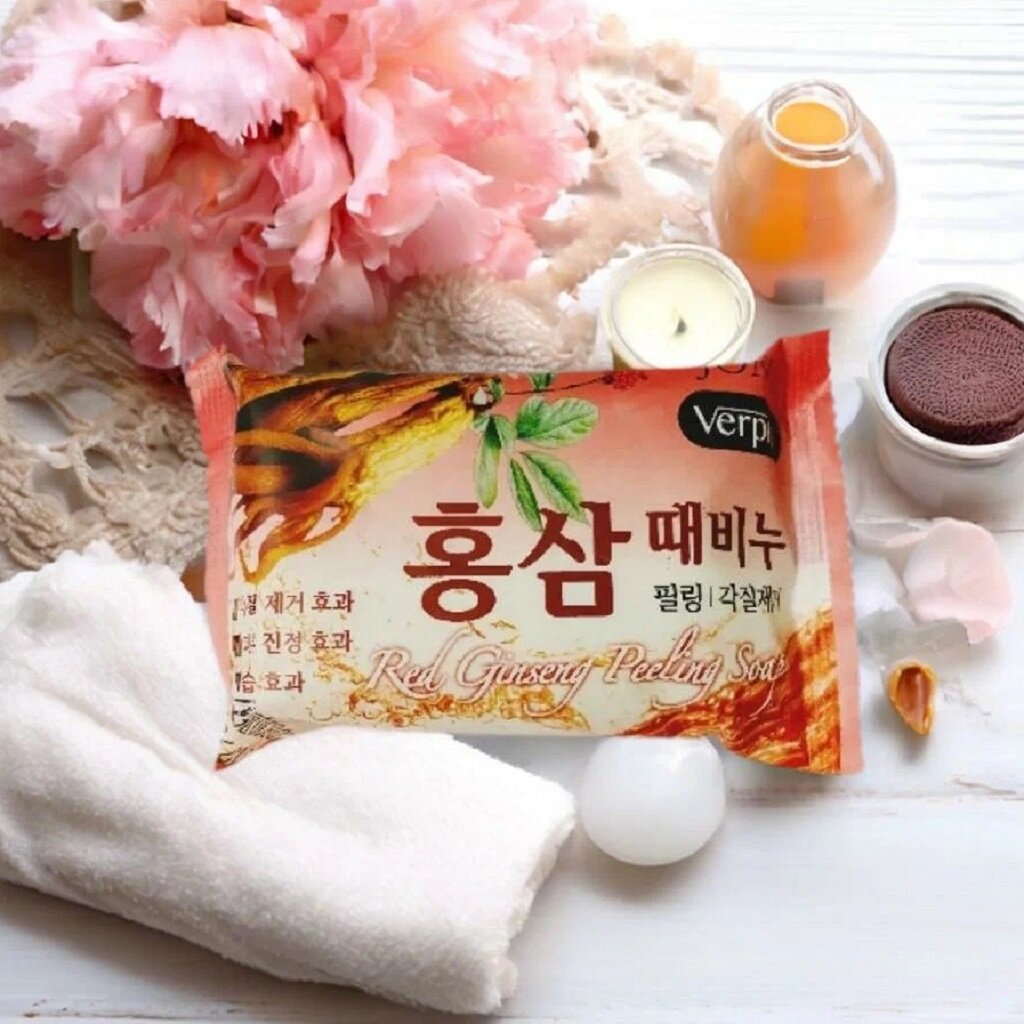 Мыло пилинг с красным женьшенем Juno Red Ginseng Peeling Soap, 150 г / Корейское мыло интересное: