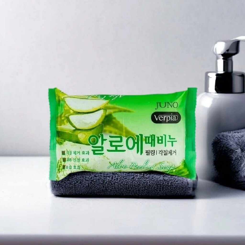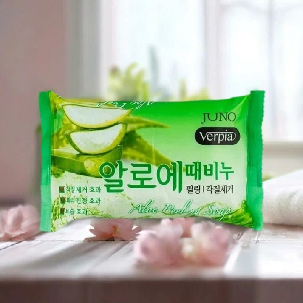 Мыло пилинг с экстрактом алоэ Juno Aloe Peeling Soap, 150 г / Корейское мыло интересное: