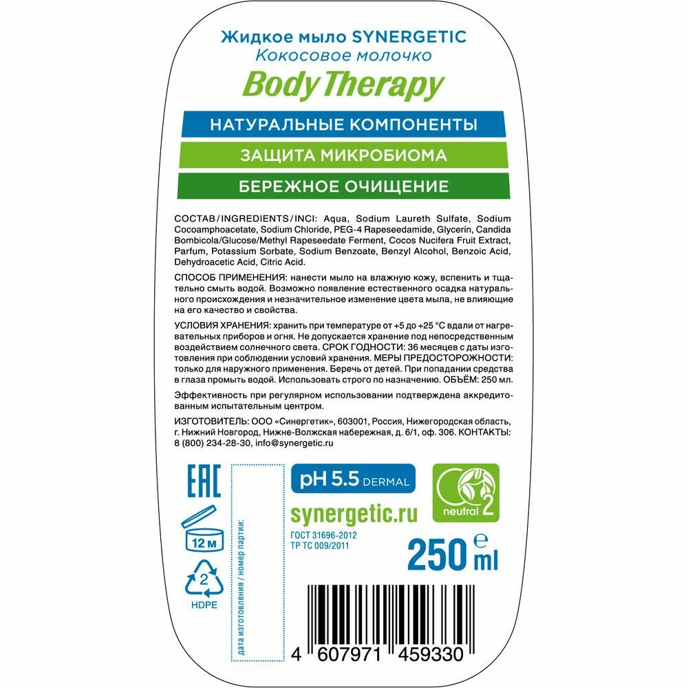 Synergetic жидкое мыло BODY THERAPY Кокосовое молочко, 250мл