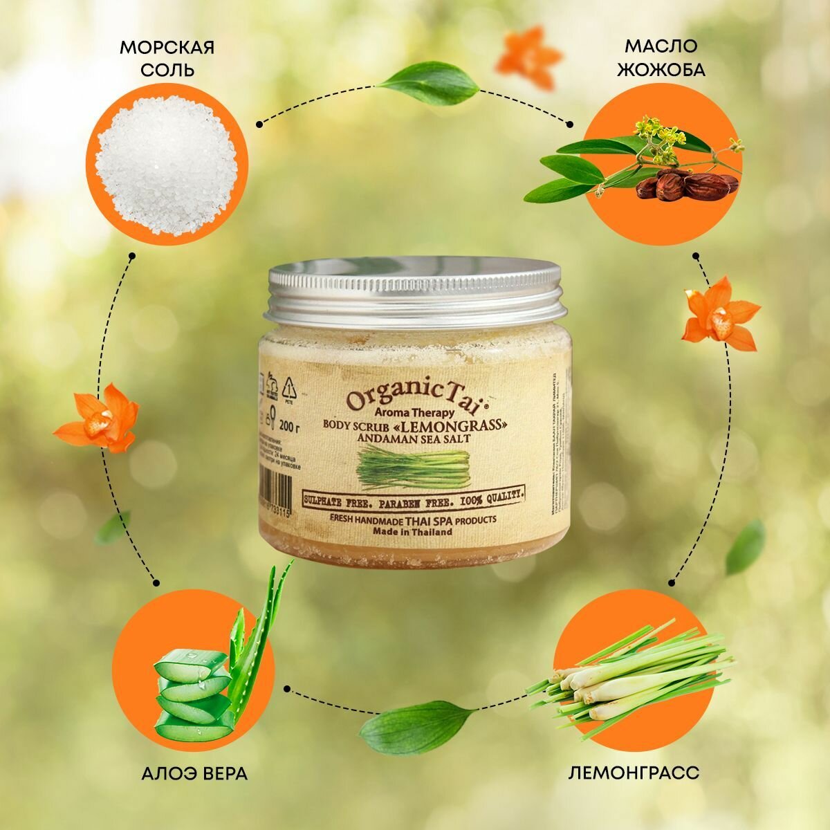 OrganicTai Скраб для тела на основе соли Андаманского моря «лемонграсс», 200 гр, OrganicTai