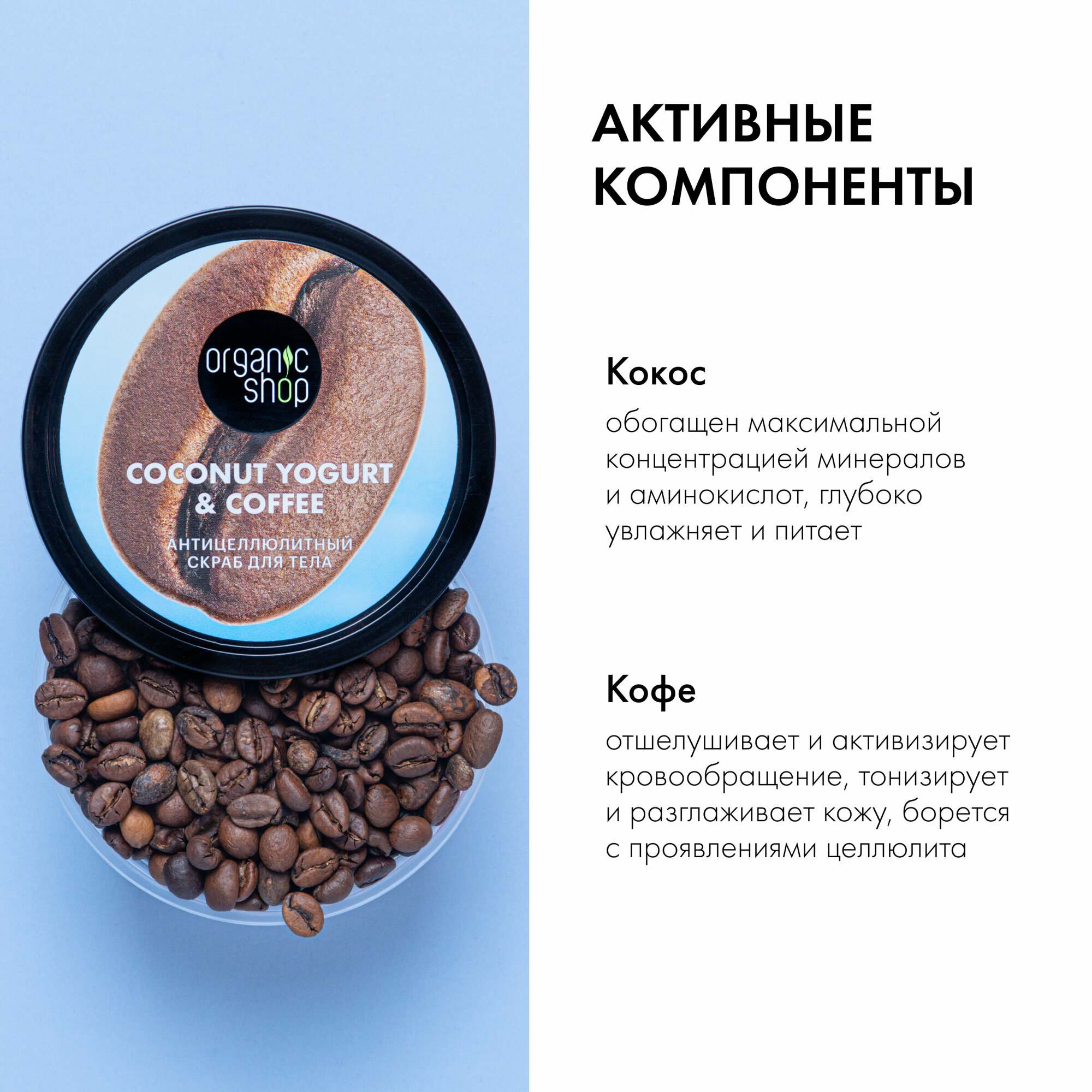Купить Скраб для тела кофейный Organic Shop "Кокосовый йогурт и кофе" антицеллюлитный от растяжек увлажняющий 250 мл