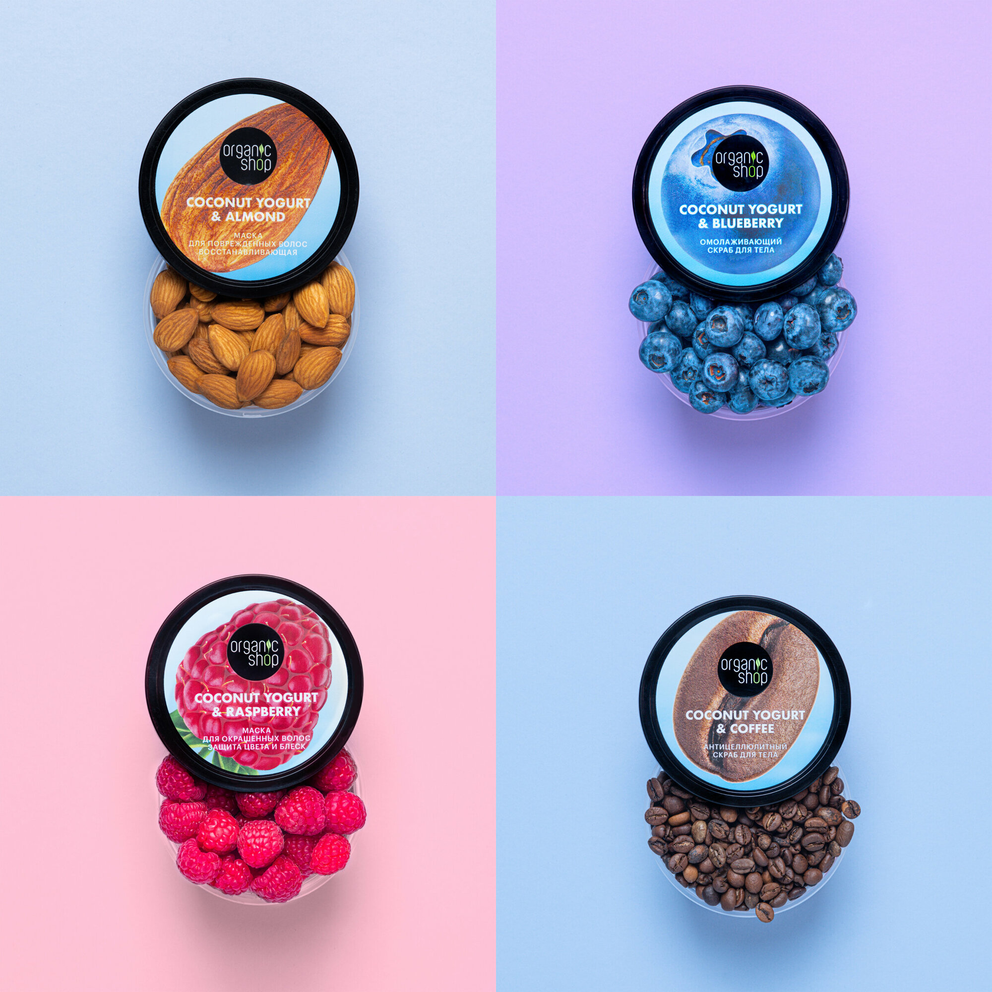 Скраб для тела солевой Organic Shop "Кокосовый йогурт и голубика" омолаживающий антицеллюлитный и увлажняющий 250 мл