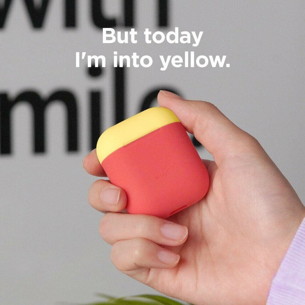 Силиконовый чехол Elago Duo Case для AirPods 1&2, цвет Белый с Желтой и Розовой крышками (EAPDO-WH-PKYE)