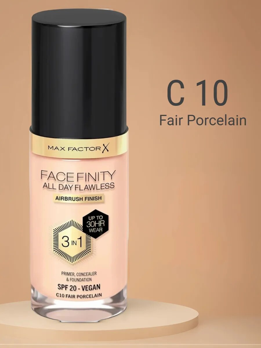 Купить Max Factor тональный крем Facefinity all day flawless 3 in 1 vegan foundation C10 FAIR PORCELAIN