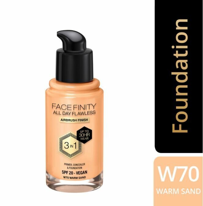 Купить Max Factor тональный крем Facefinity all day flawless 3 in 1 vegan foundation W70 WARM SAND