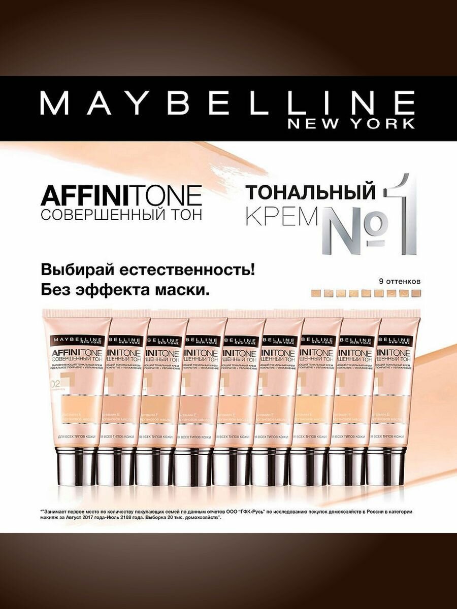 Мейбелин / Maybelline - Тональный крем Affinitone тон 02 Слоновая кость 30 мл