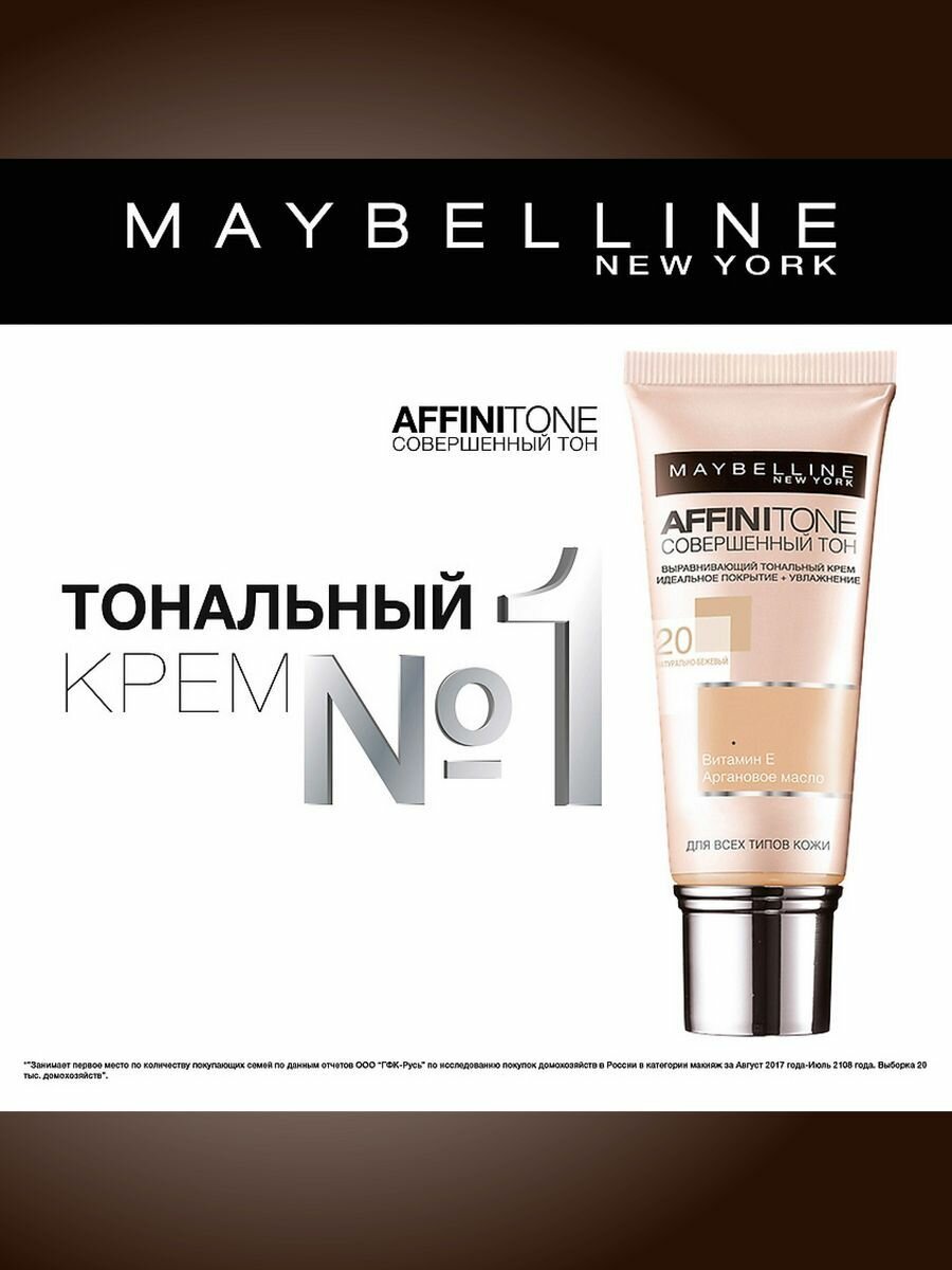 Maybelline New York - Affinitone Совершенный тон Крем тональный, тон 20 Натурально-бежевый