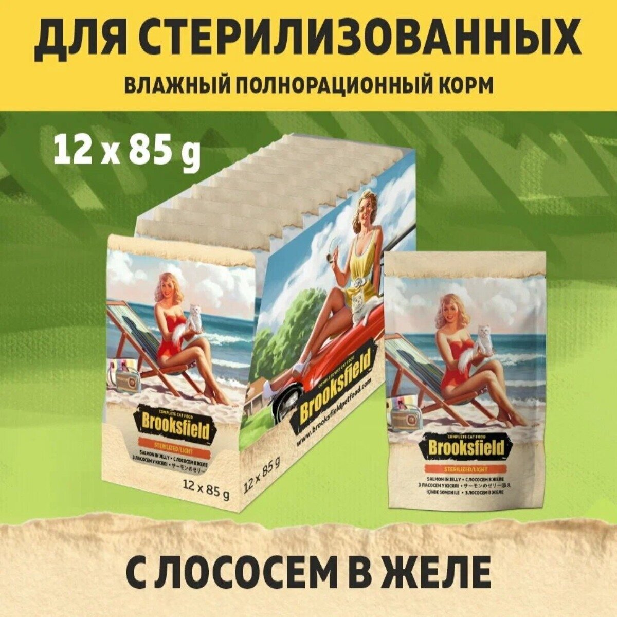 Корм для кошек стерилизованных влажный BROOKSFIELD (Бруксфилд) Sterilized/Light (пауч) 12шт - 85г, Лосось в желе