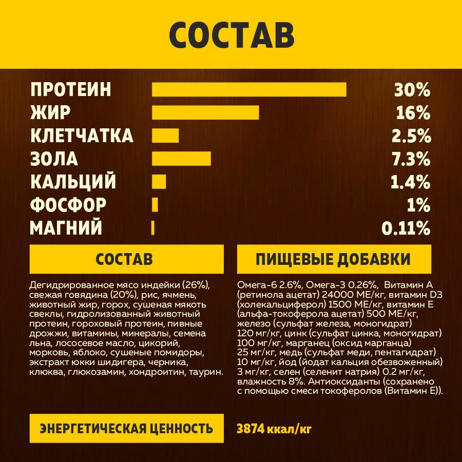 | Возраст животного | взрослые (1-6 лет) |
