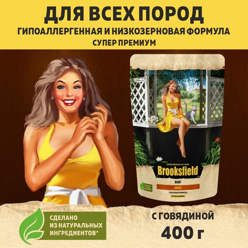Корм сухой для кошек 400 г BROOKSFIELD (Бруксфилд) Low Grain Adult Cat Beef, Говядина