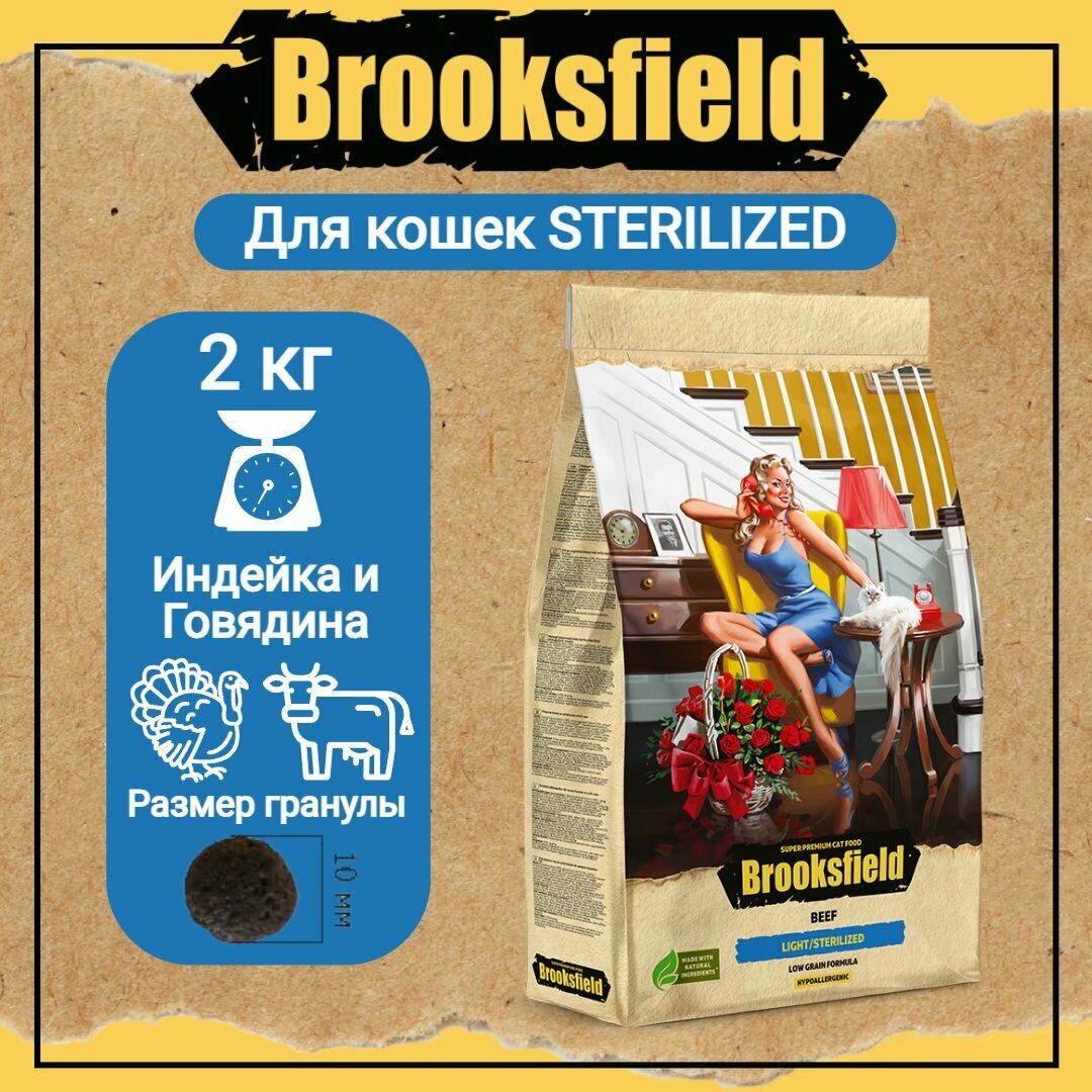 Корм для кошек сухой с избыточным весом и стерилизованных, гипоаллергенный BROOKSFIELD (Бруксфилд) Индейка и говядина, 6 кг
