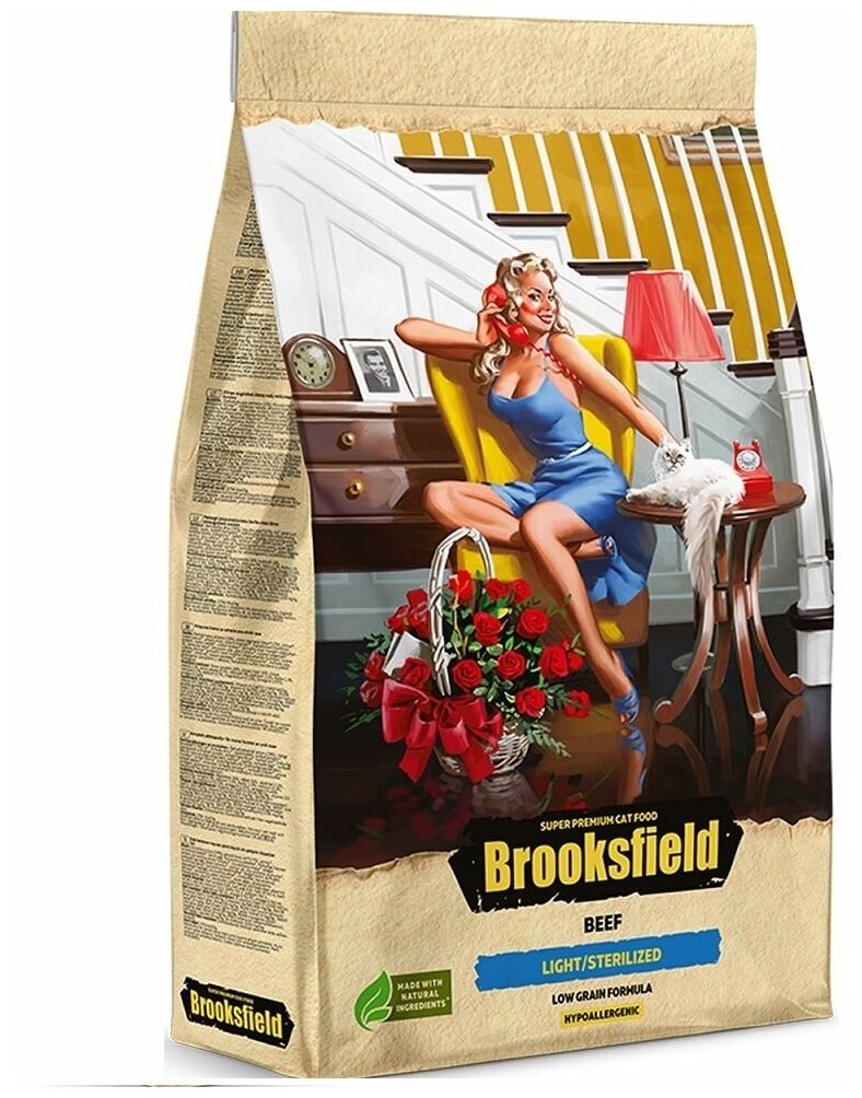 Brooksfield Low Grain Adult Cat Light/Sterilized Beef сухой корм для взрослых кошек с избыточным весом и стерилизованных, с говядиной и рисом - 2 кг
