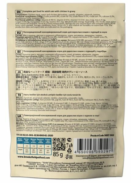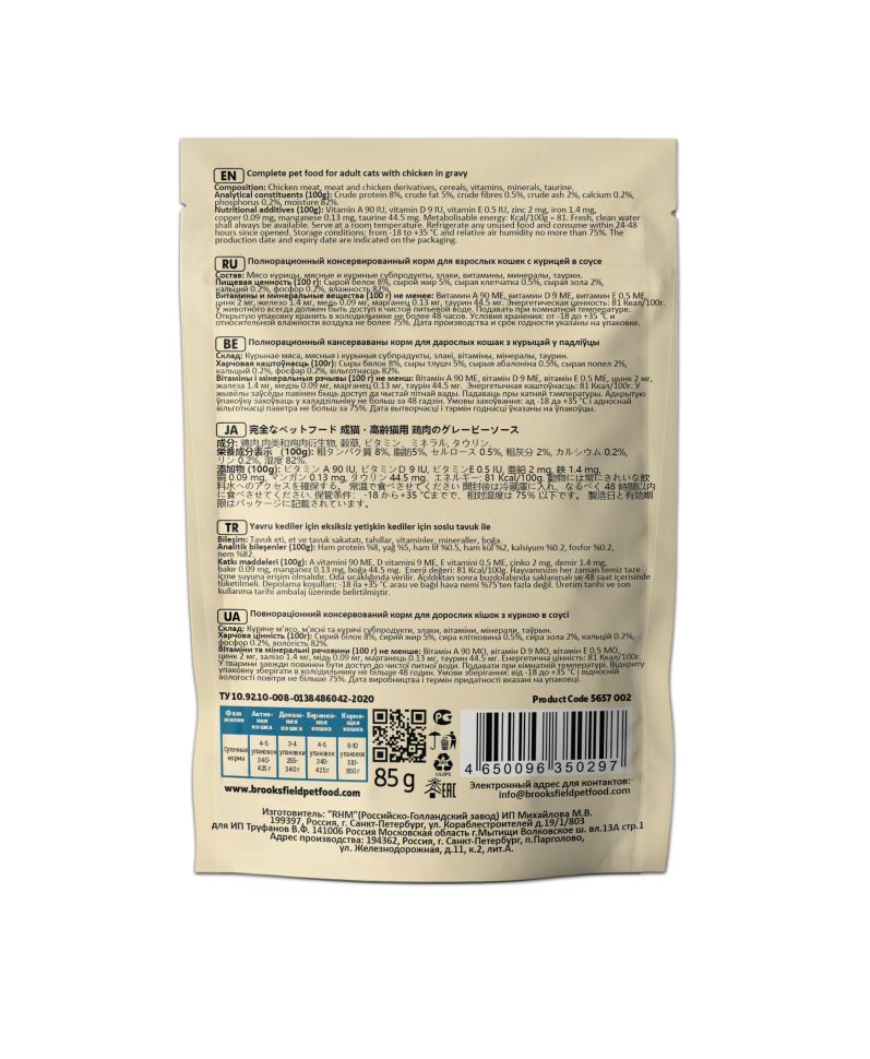 СохранитьКорм для кошек влажный BROOKSFIELD (Бруксфилд) Adult (пауч) 12 шт - 85 г, Курица в соусе интересное: