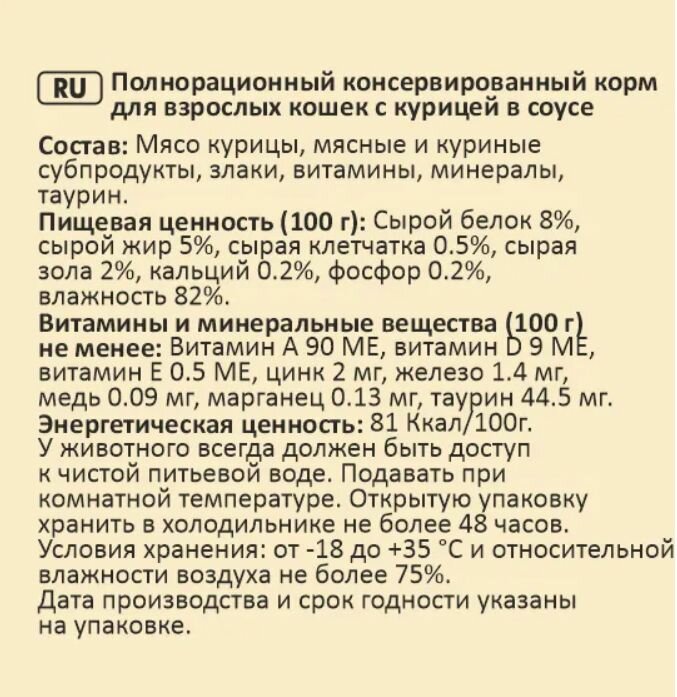 | Вкус | курица |