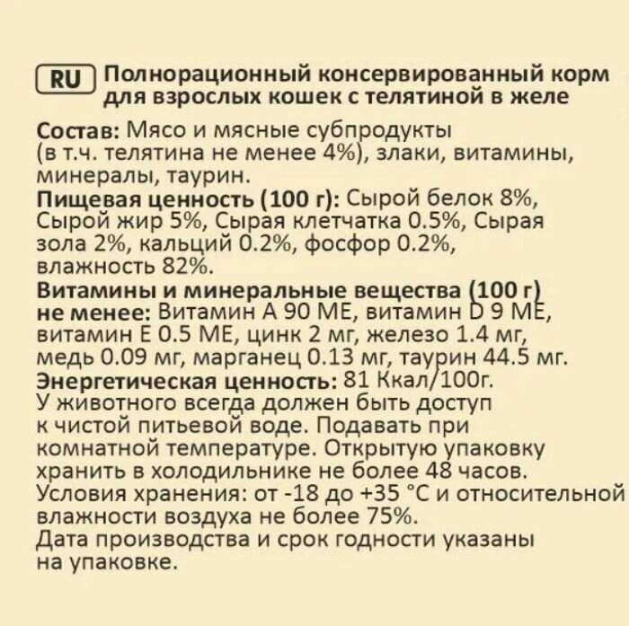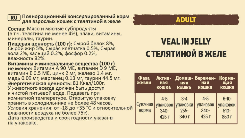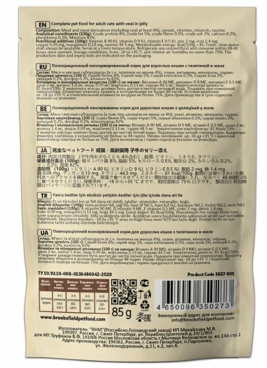 СохранитьКорм для кошек влажный BROOKSFIELD (Бруксфилд) Adult (пауч) 12шт - 85г, Телятина в желе интересное: