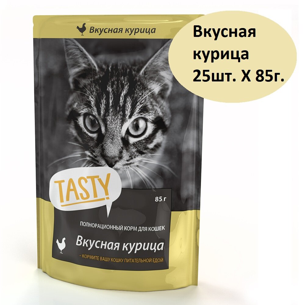 TASTY корм консервированный для кошек с курицей в желе пауч 85г (25шт.)