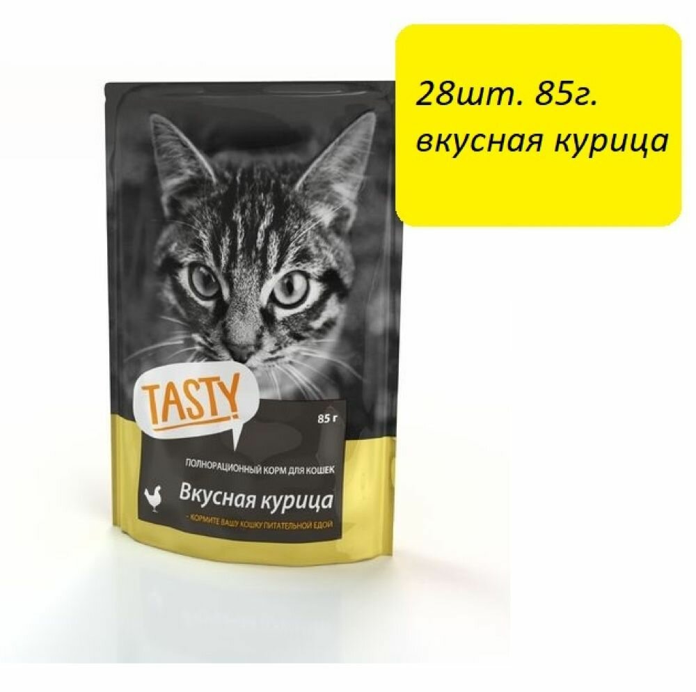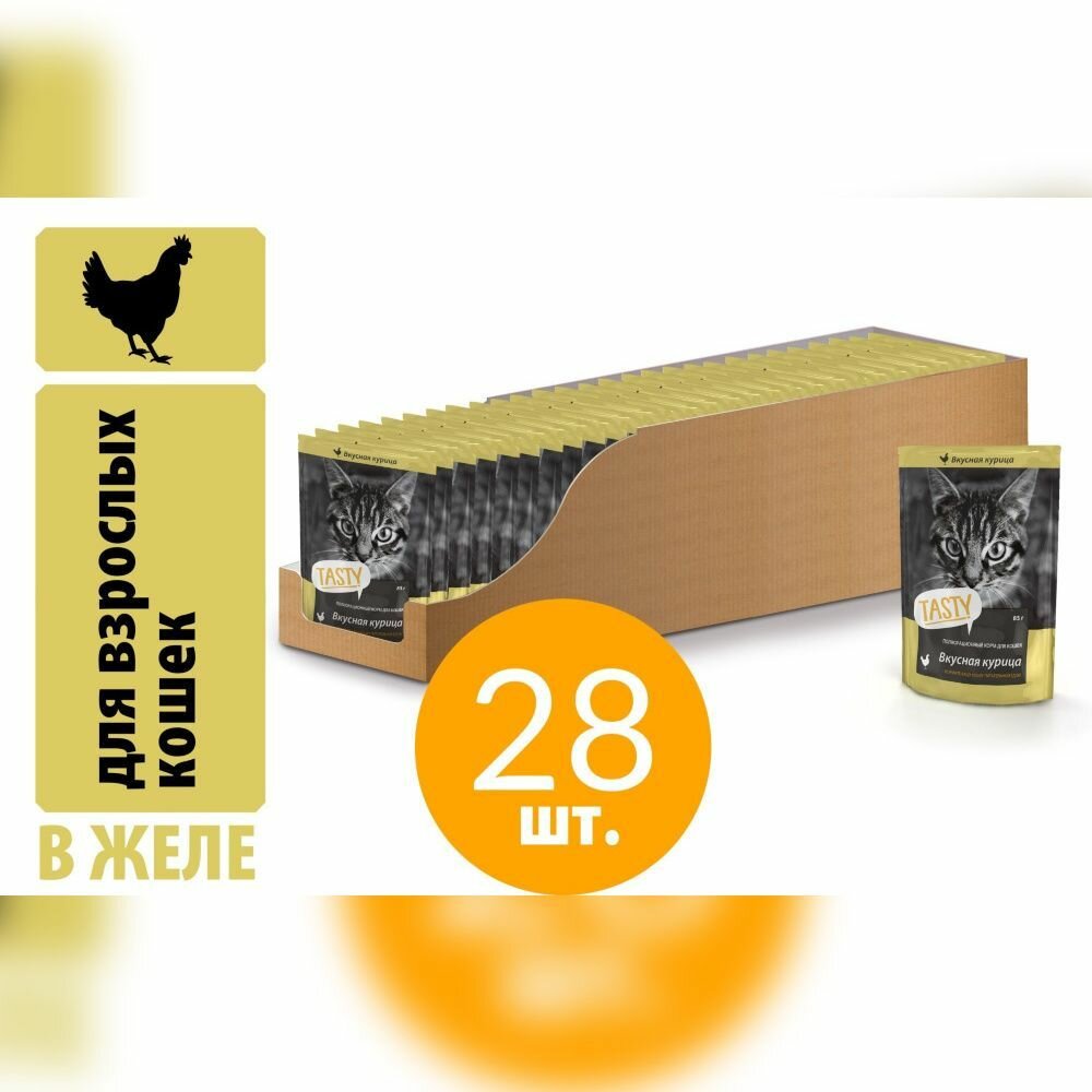 Влажный корм Tasty для кошек, курица в желе, пауч, 85 г