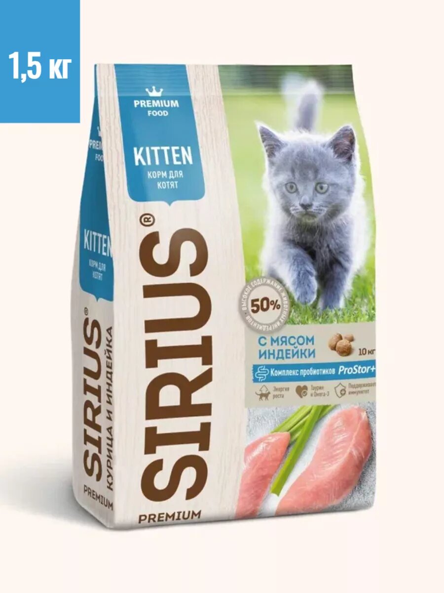 Sirius Сириус сухой полнорационный корм корм для котят с мясом Индейки 1,5кг
