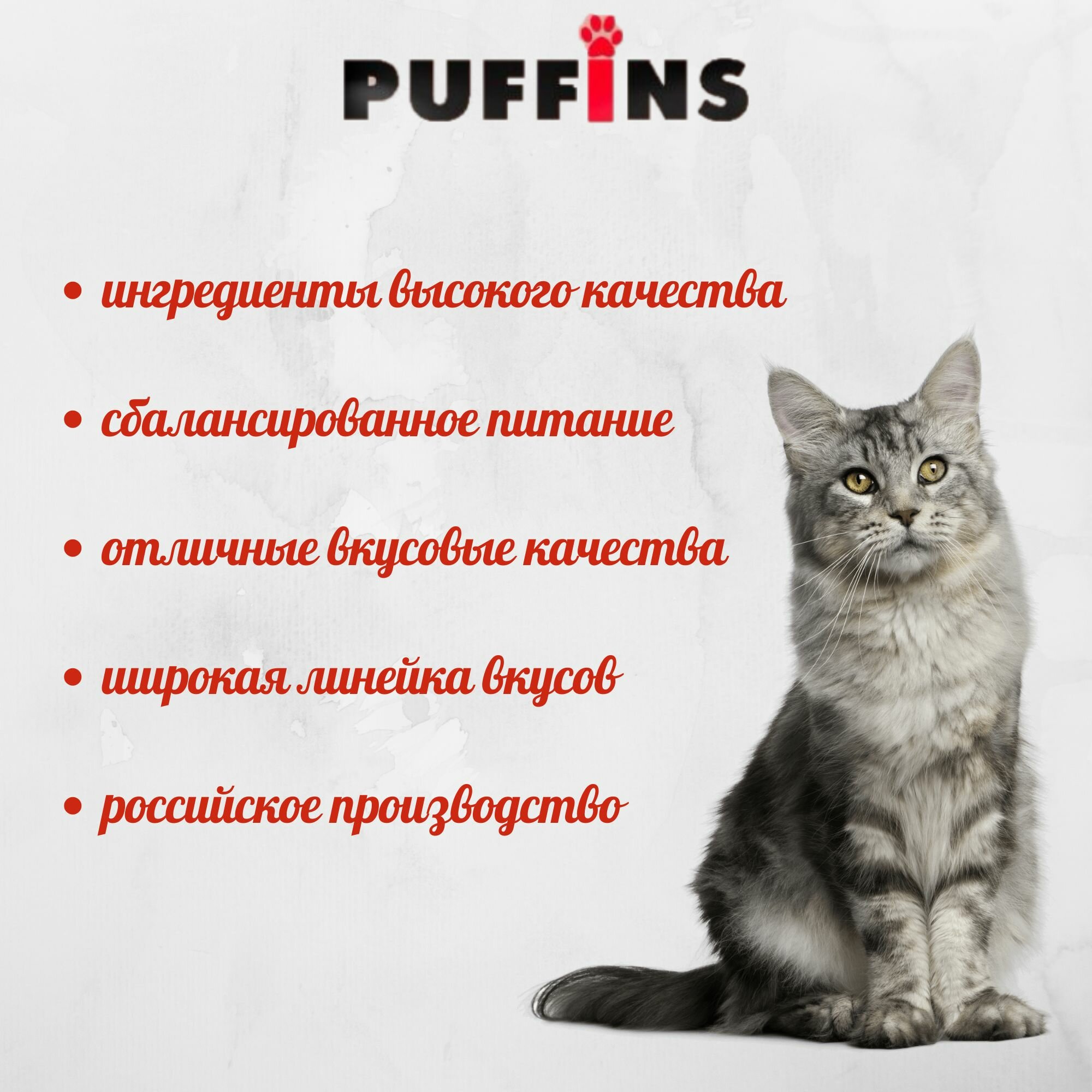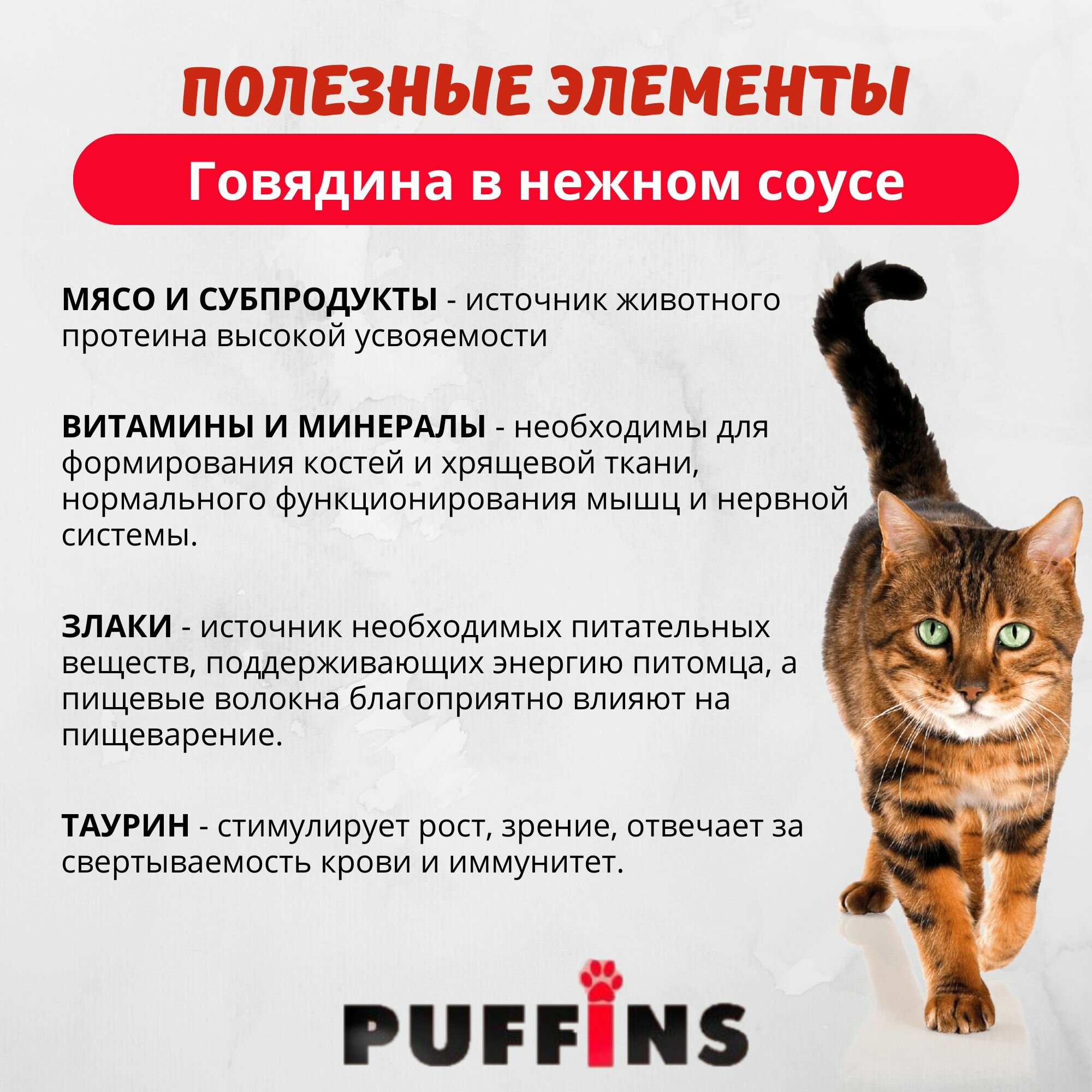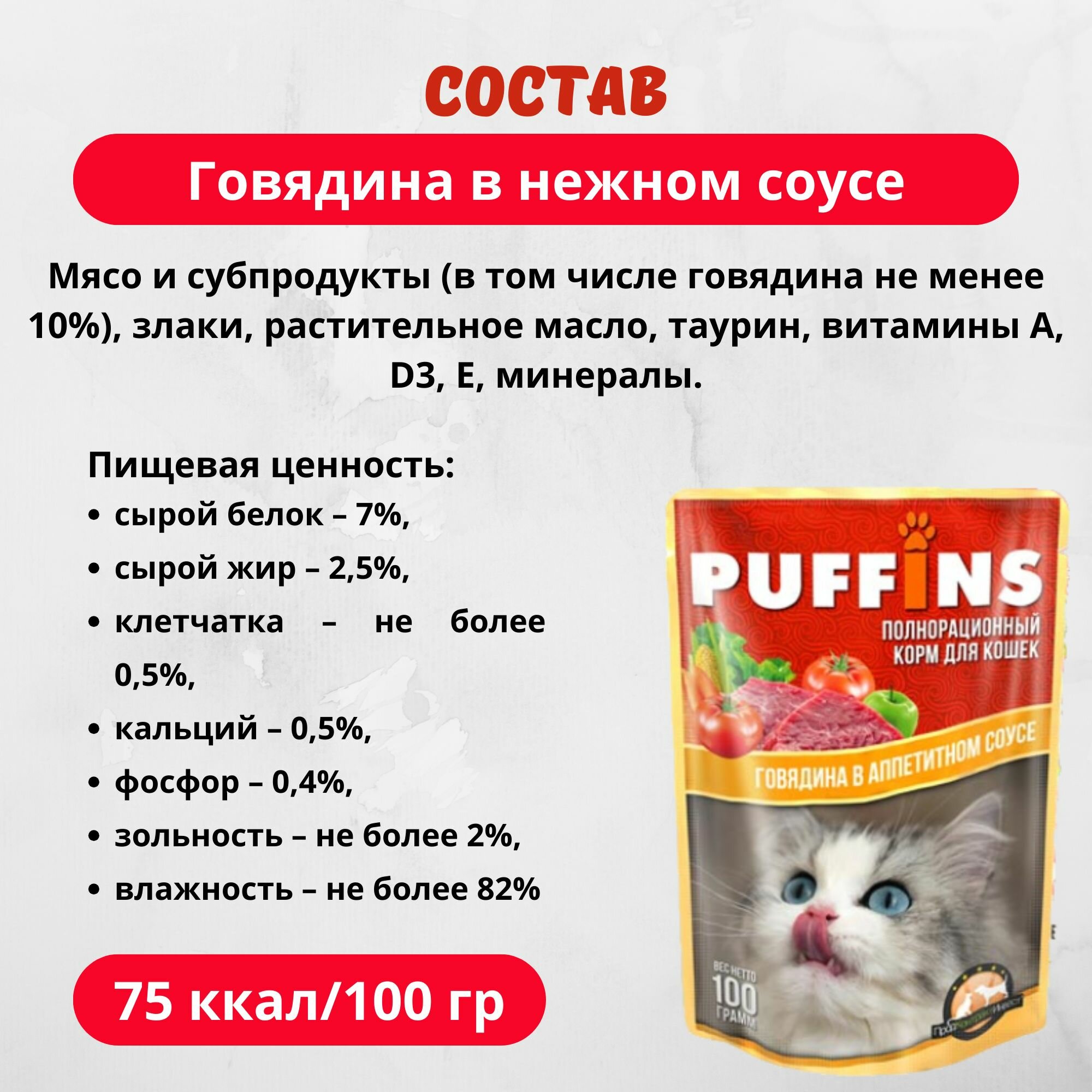PUFFINS для взрослых кошек с говядиной в аппетитном соусе пауч 100 гр 100 гр х 5 шт
