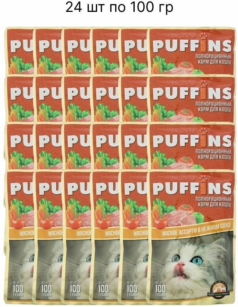 Puffins Консервы для кошек, 24 шт по 100 г