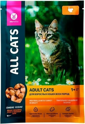 Купить Корм для кошек блок 28 штук*85 г ALL CATS индейка в соусе тефтельки/ Аллер Петфуд/Россия
