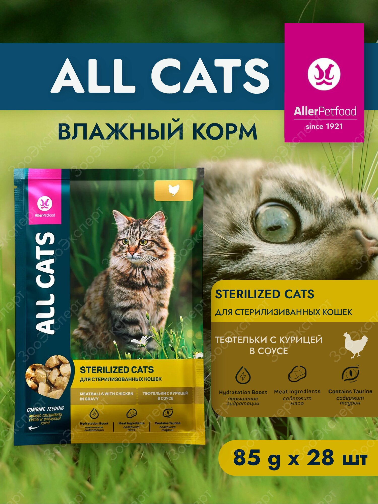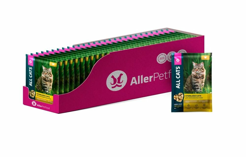 Корм для кошек блок 28 штук*85 г ALL CATS индейка в соусе тефтельки/ Аллер Петфуд/Россия