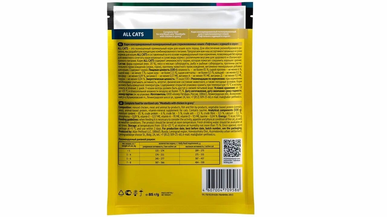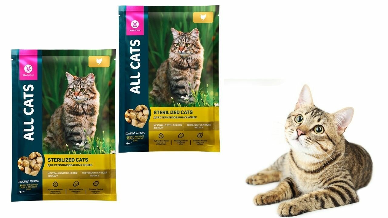 СохранитьALL CATS корм консервированный для стерилизованных кошек тефтельки с курицей в соусе пауч 85г (28шт) интересное:
