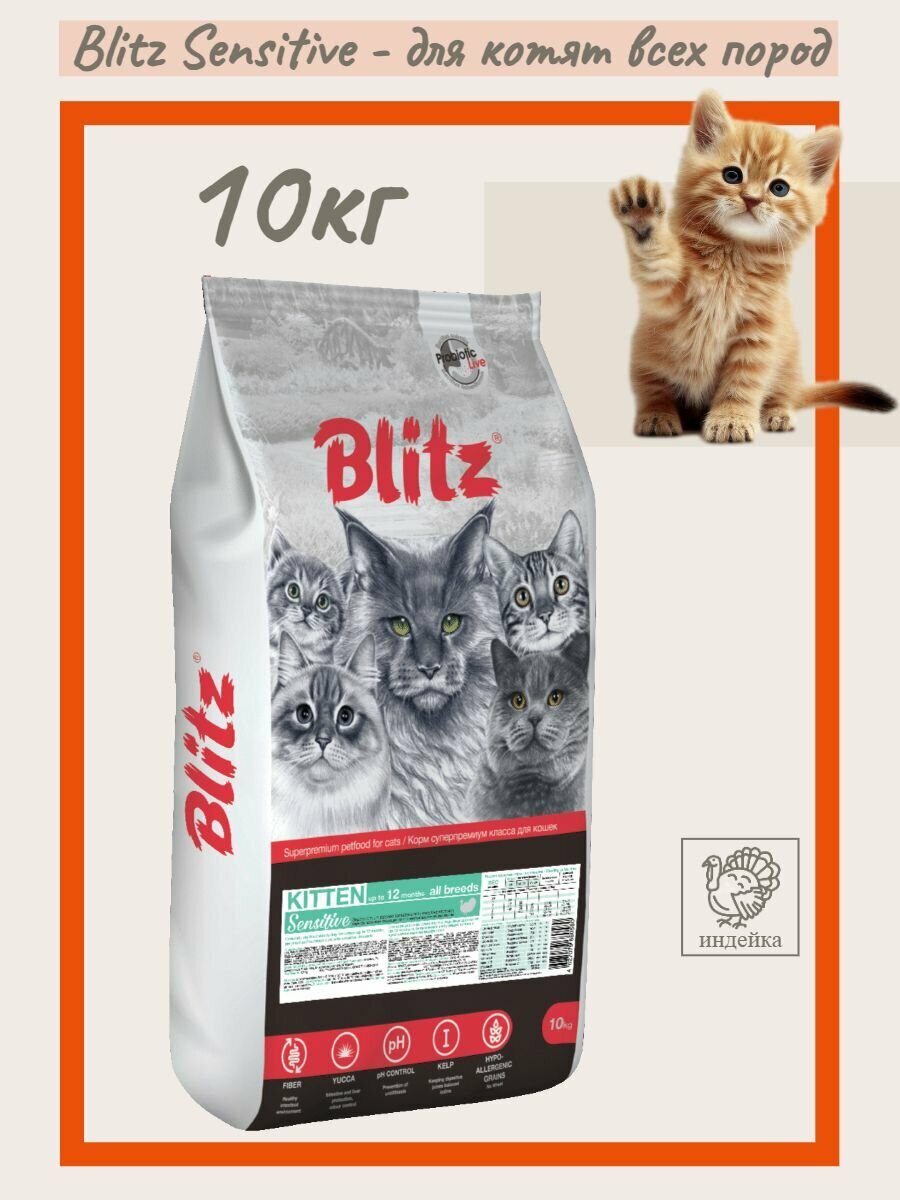 BLITZ SENSITIVE KITTEN TURKEY сухой корм для котят с индейкой 10 кг
