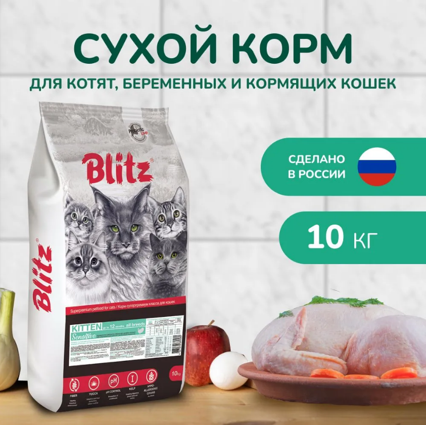 Корм сухой Blitz (pet) Blitz с индейкой для котят, беременных и кормящих кошек, 10кг