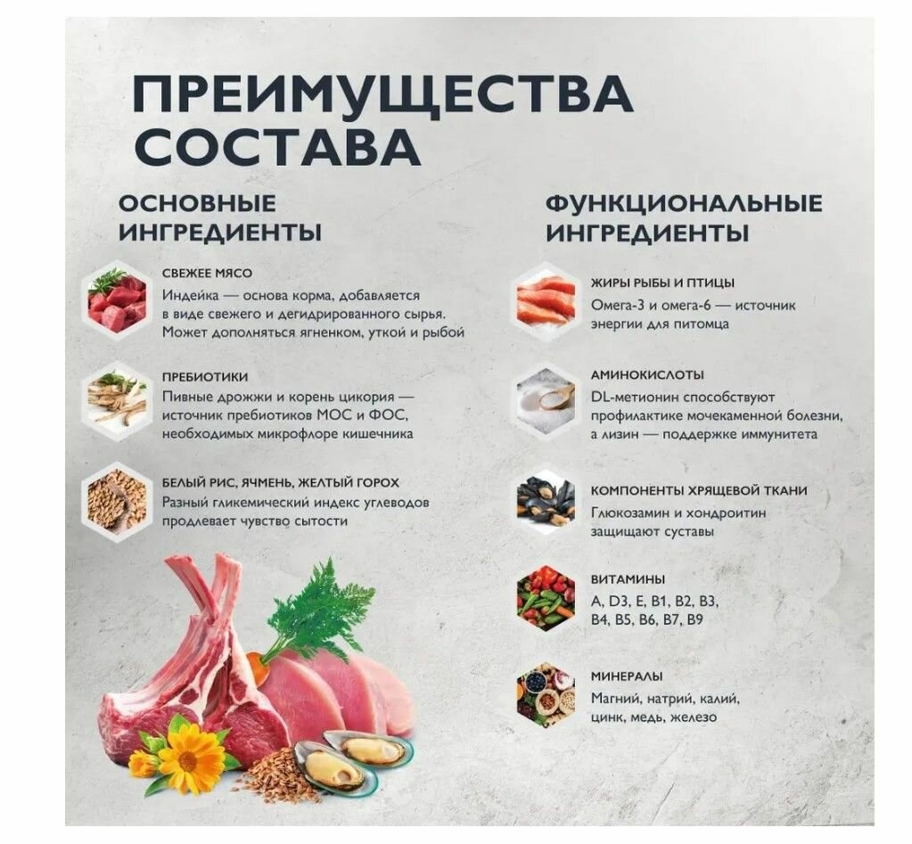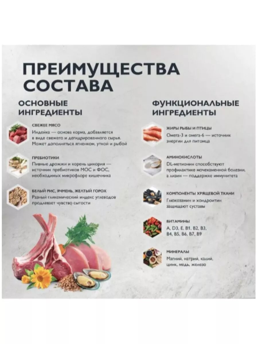 | Плюсы: | Сбалансированный по составу, содержит высокий процент мясных ингредиентов, не содержит вкусовых добавок. |