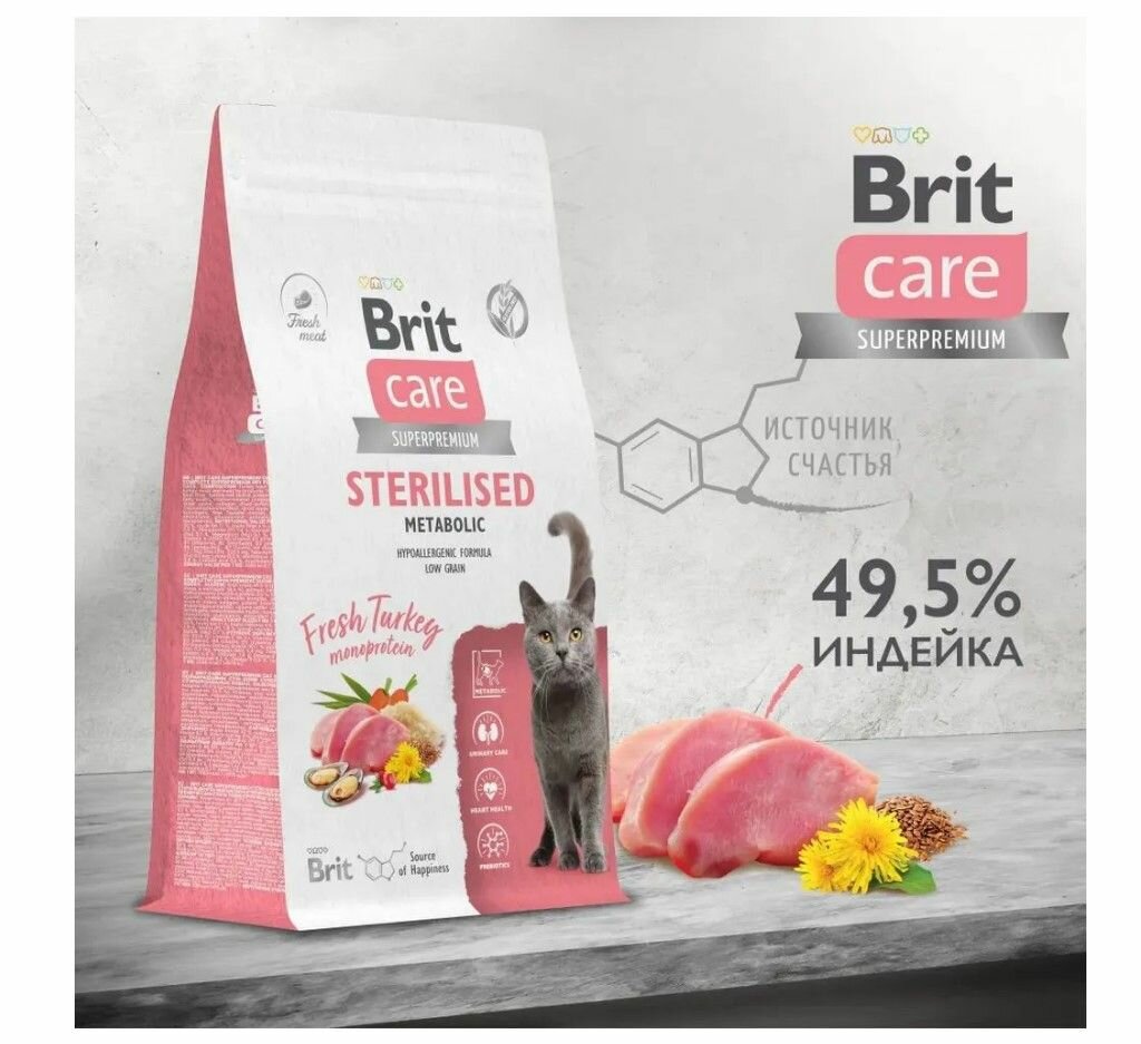 BRIT CARE, Сухой корм с индейкой для стерилизованных кошек "Cat Sterilised Metabolic", 1.5 кг