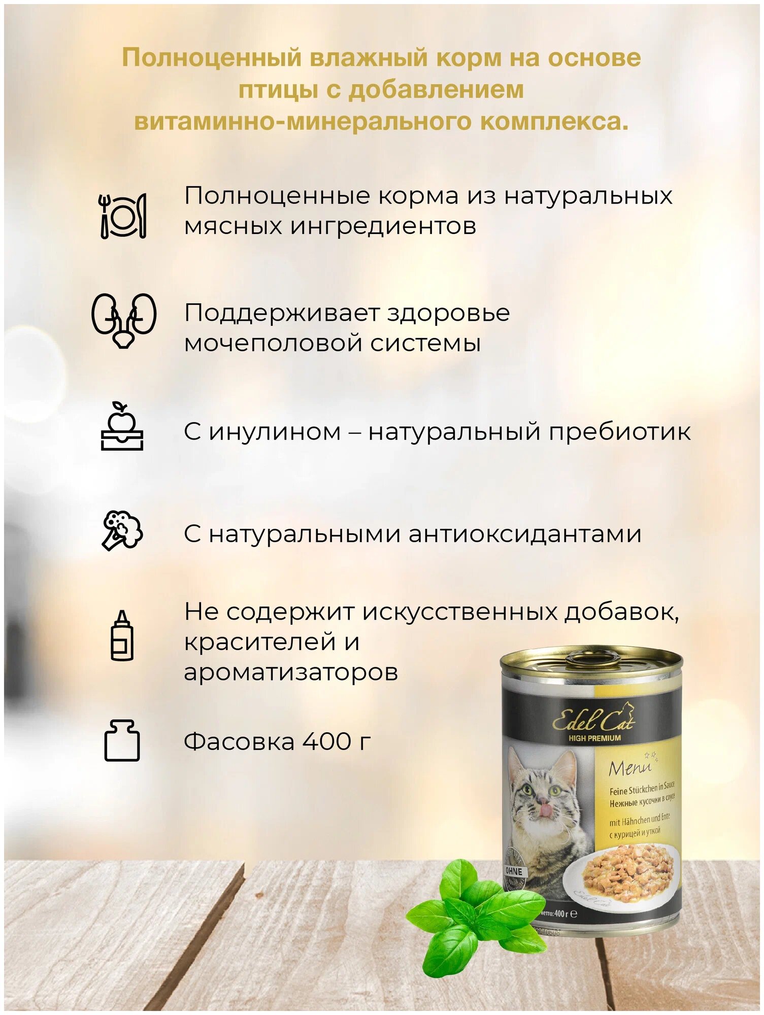 Влажный корм для кошек Edel Cat курица, утка 12 шт. х 400 г (кусочки в соусе)