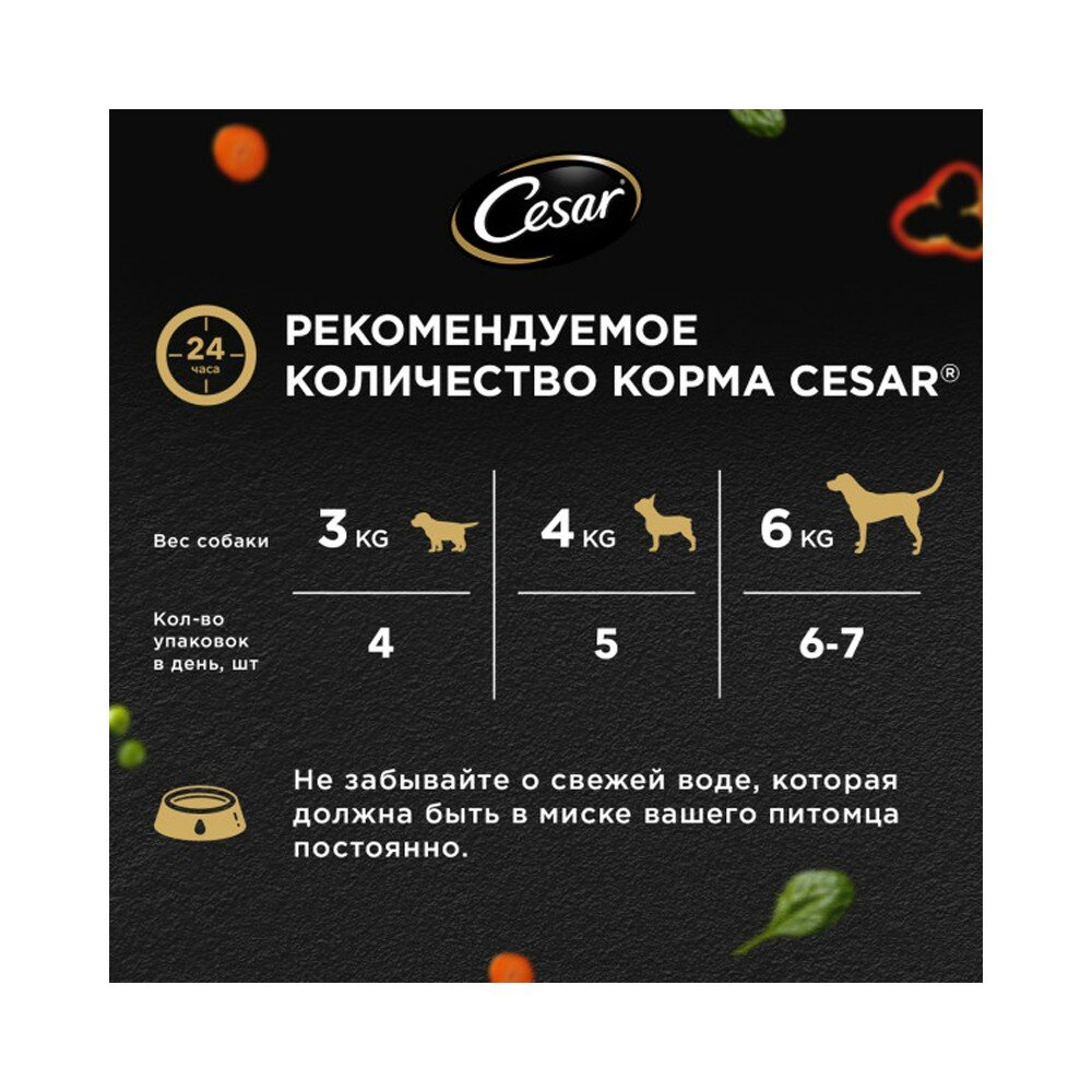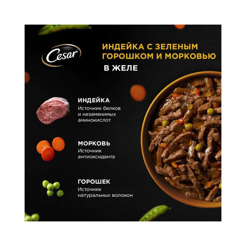 СохранитьВлажный корм Cesar для собак, индейка, горох, морковь, в желе пауч, 80г (комплект из 28 шт) интересное: