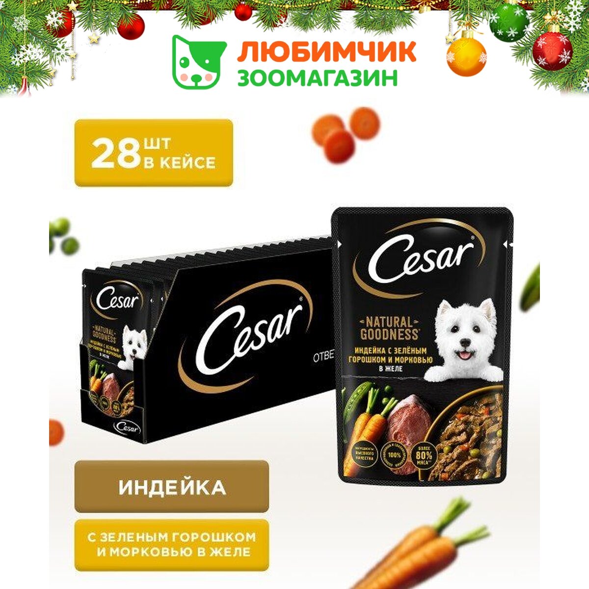 Влажный корм Cesar Natural Goodness для взрослых собак, с индейкой, горохом и морковью в желе, 28 шт х 80г