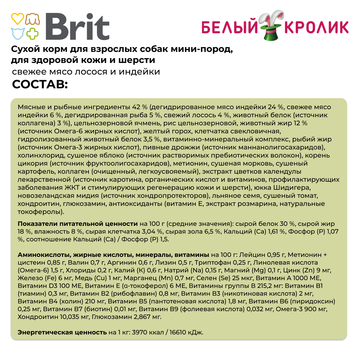 Сухой корм с лососем и индейкой для cобак мини пород "Adult.Healthy Skin&Shiny Coat", BRIT CARE Min1.5 кг