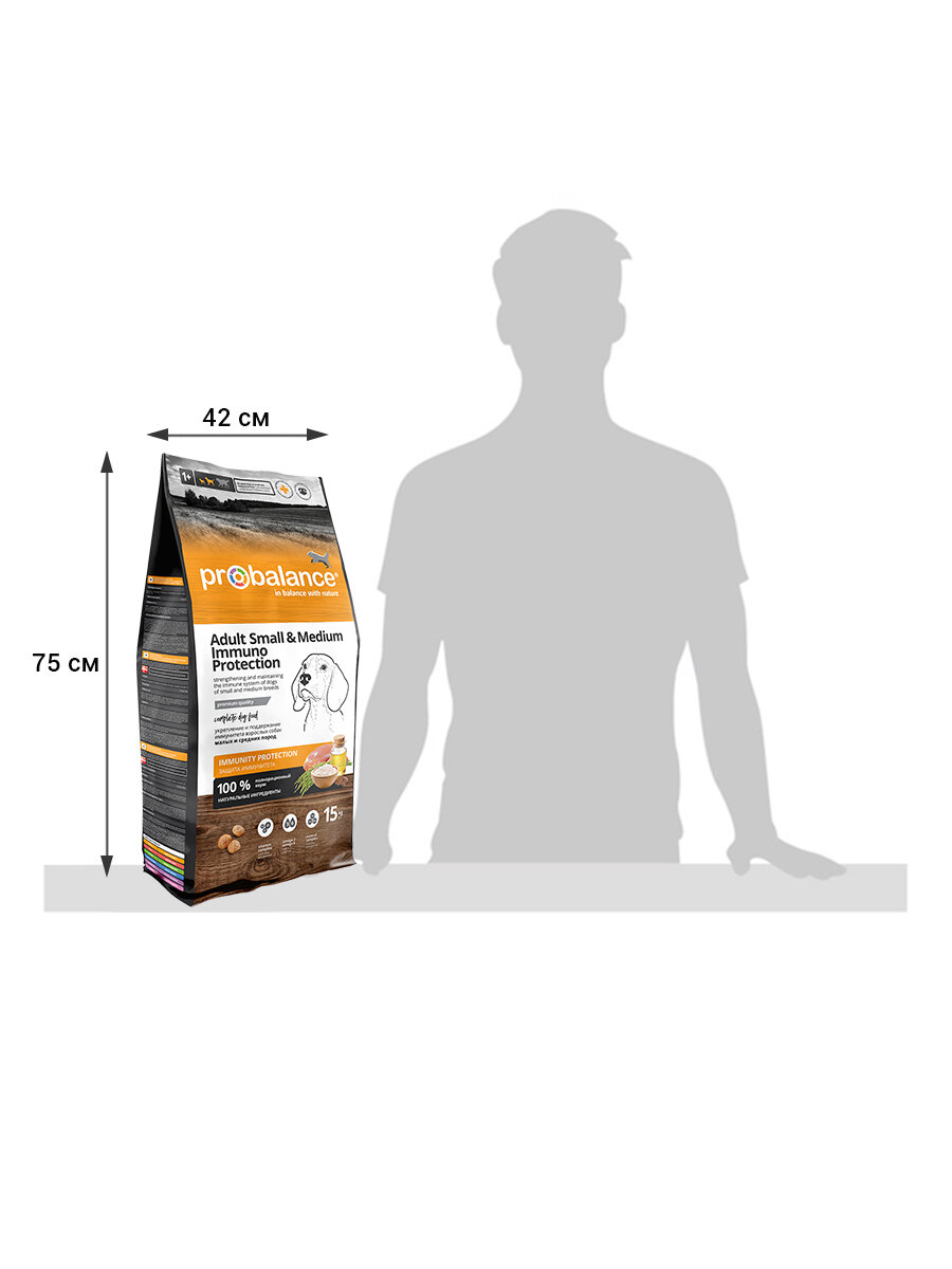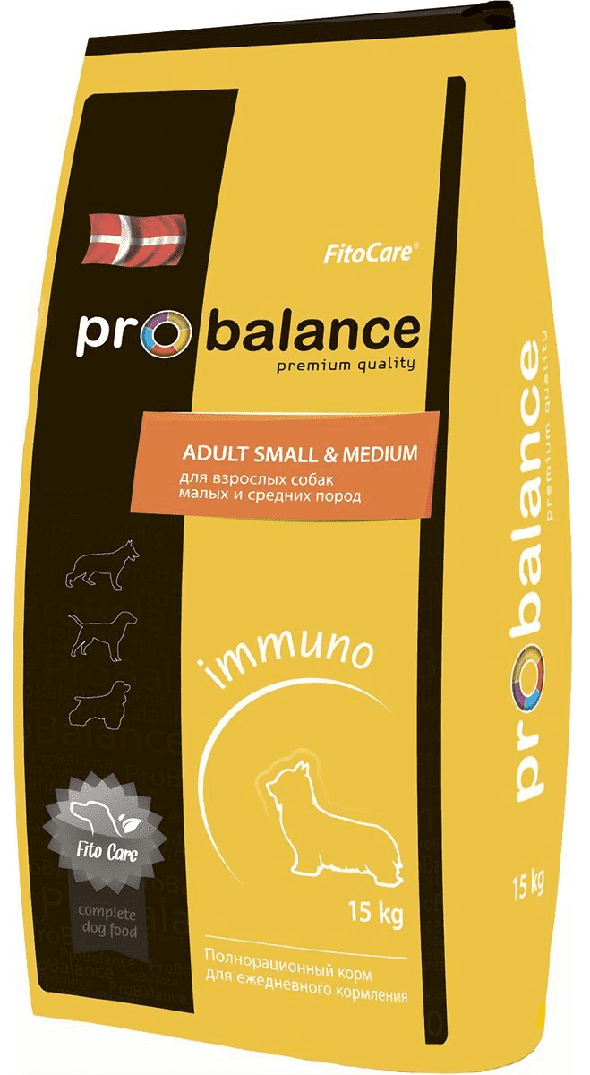 Корм ProBalance Immuno Adult Small and Medium для взрослых собак малых и средних пород, 15 кг